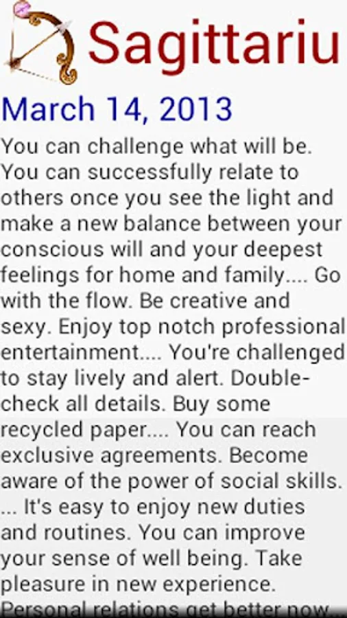 The Daily Prediction Horoscope app gives your daily astrological forecast based upon the Sun Sign Zodiac of the Horoscope. The app gives Updated daily horoscope predictions in English Language. Every day you will be able to receive new forecasts on your mobile phone.