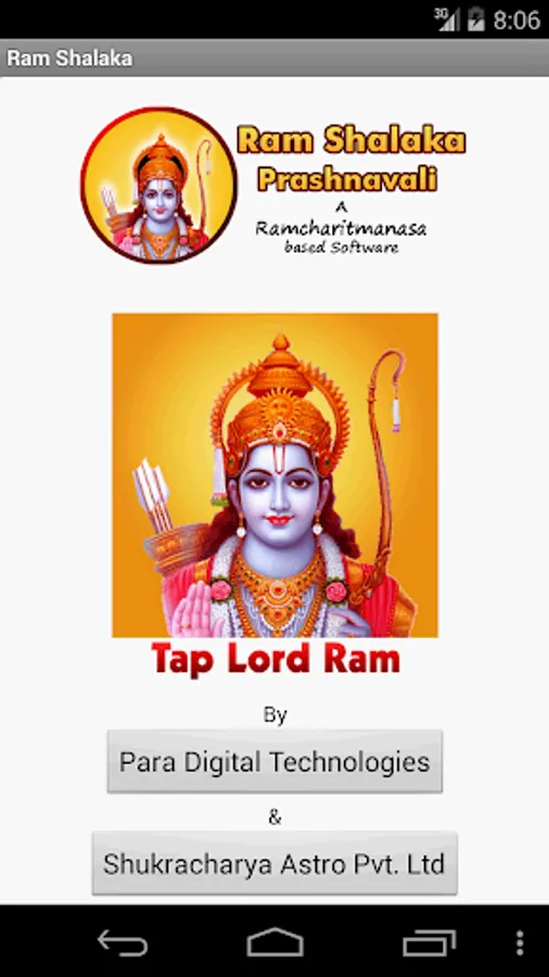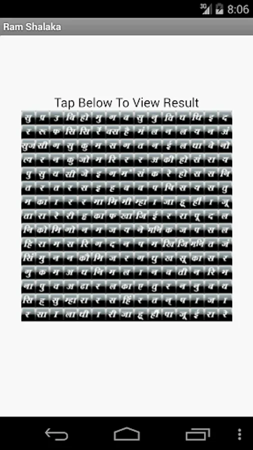 First remember Lord Shri Rama in your mind and pray him to give answer (don't disclose the Question to anyone before asking to Shri Rama). All you have to do is just click/Tap on any of the letters in the boxes with closed eyes with Thumb Only. For the best answer of your question you should have only close-ended question in your mind. Then a couplet (chaupai), the place from where it has been taken and Your Answer will be displayed on your screen.
