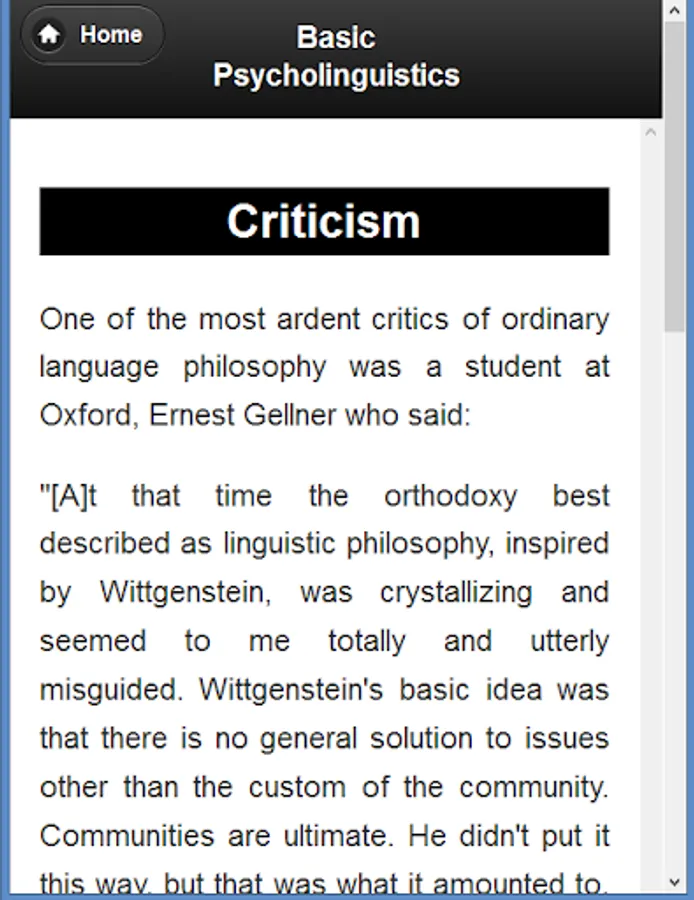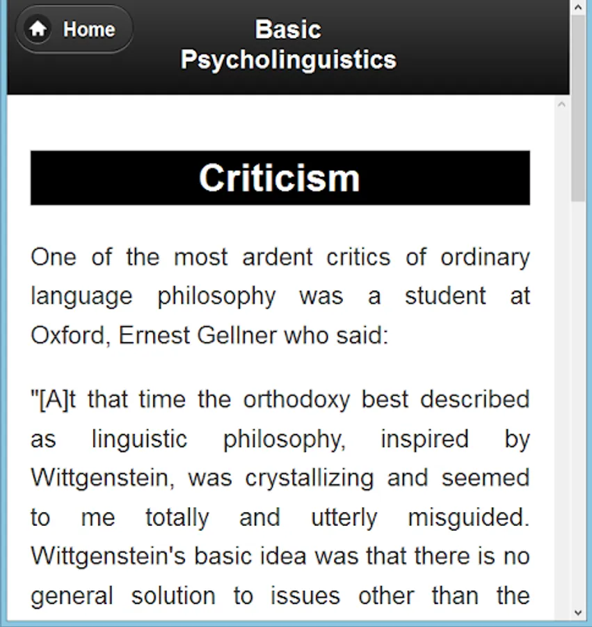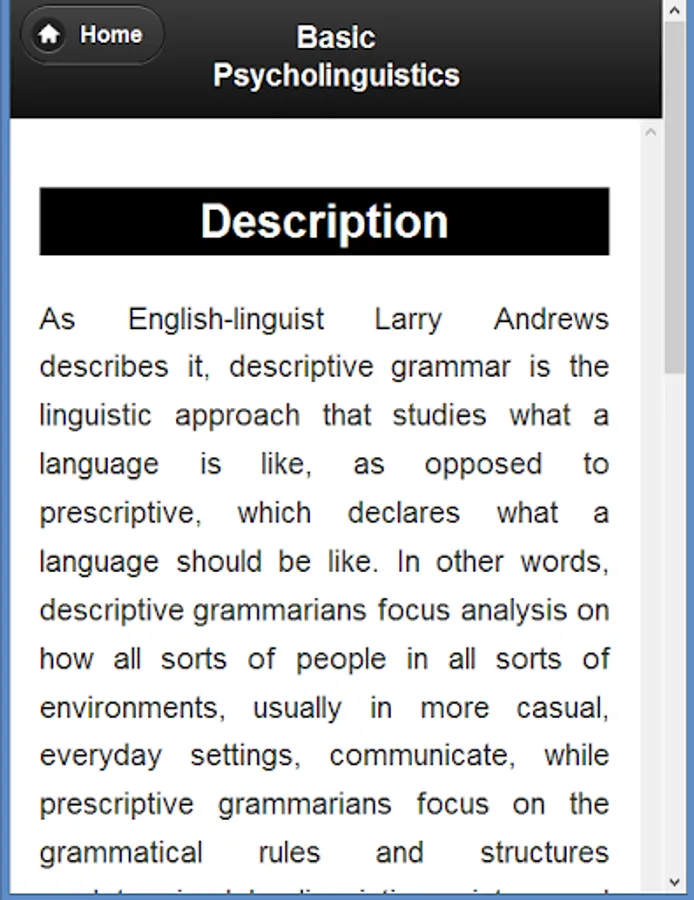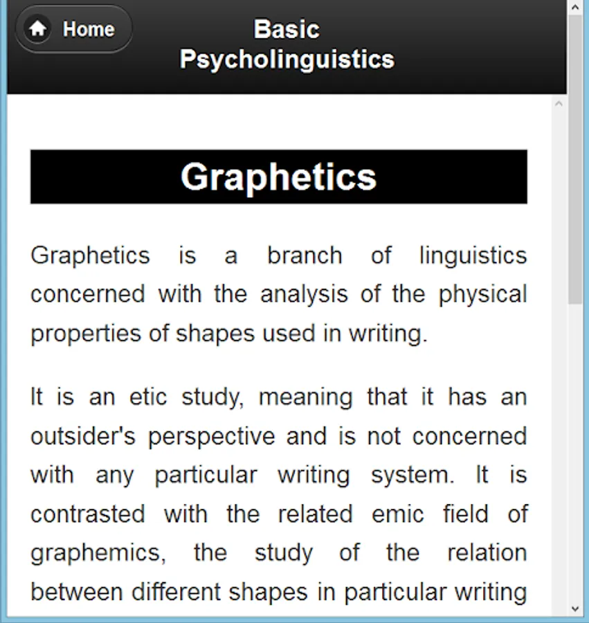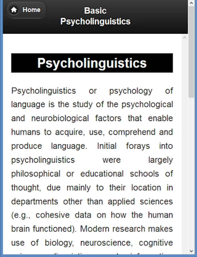 In this app the basic idea of Psycholinguistics is described. It can help those who want to know the idea of Psycholinguistics.