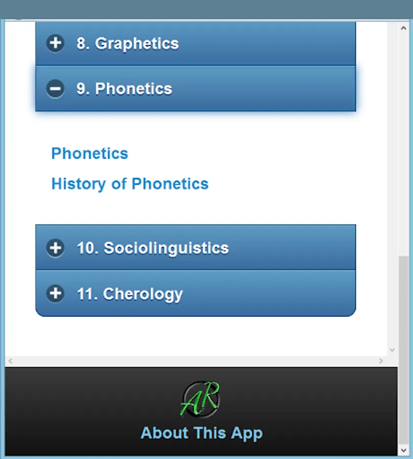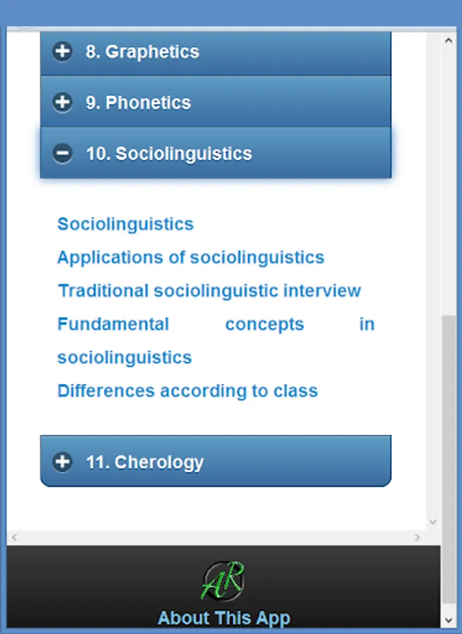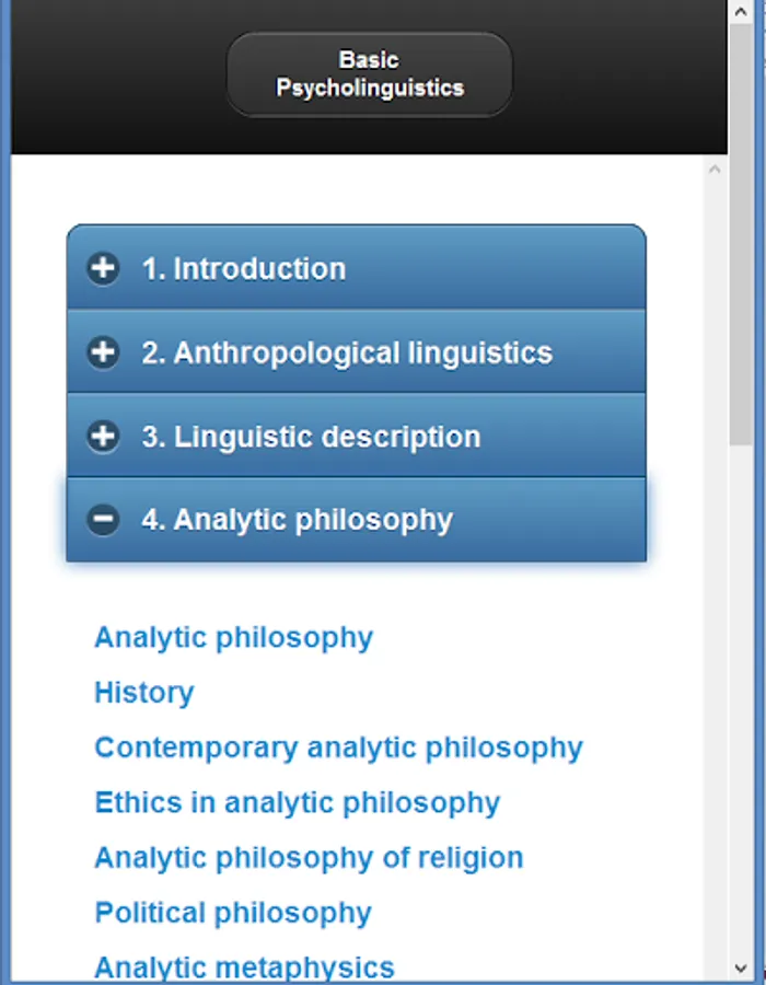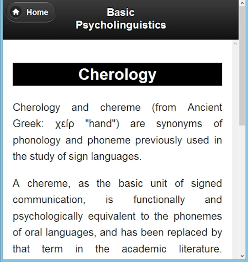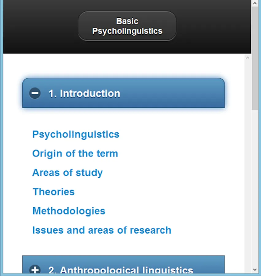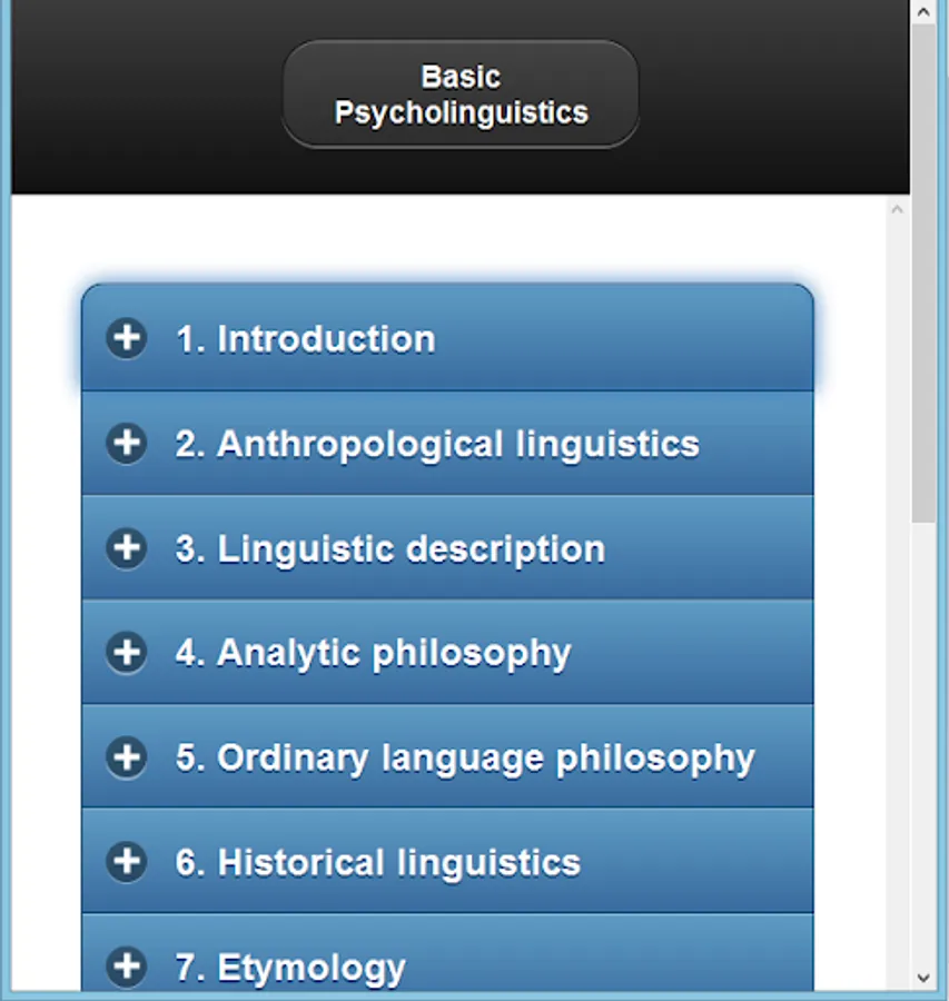 Basic topics Psycholinguistics are the main topics of this app.