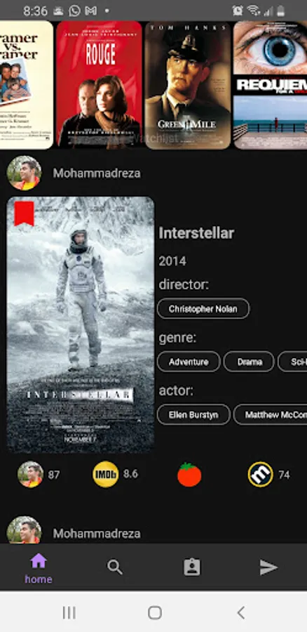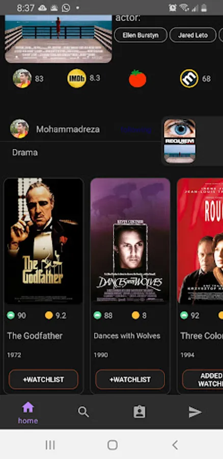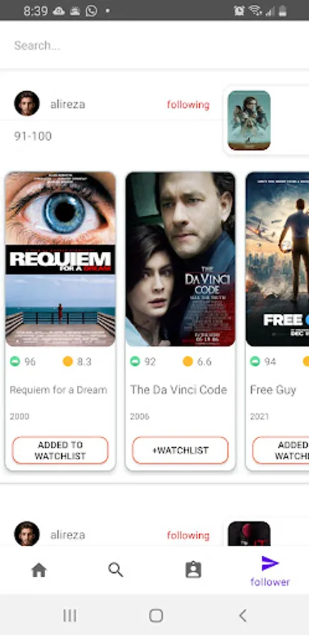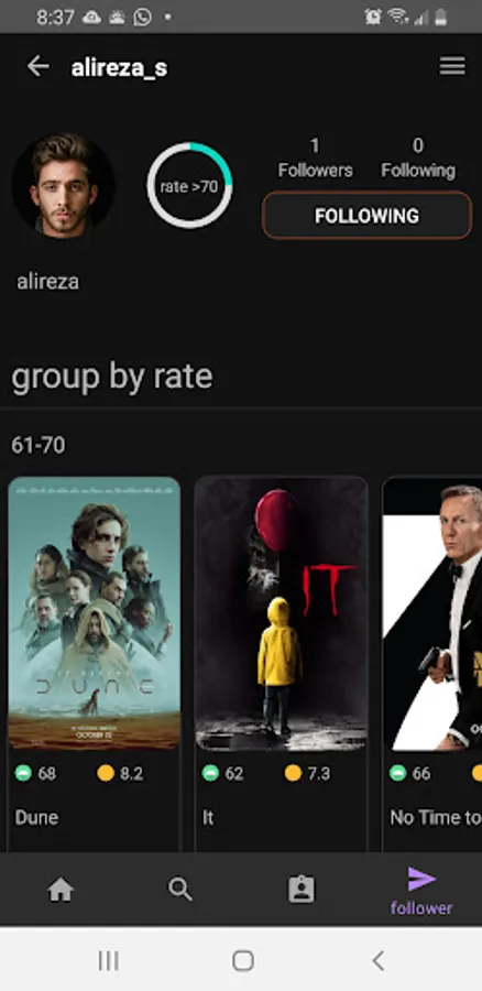 Besides you can save your movies in your profile and post them based on genre and rate so you can be followed by others as you can follow them