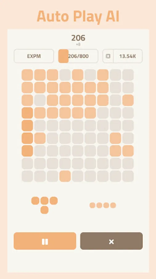 Unlock more levels with unique challenging goals. Different puzzle sizes such as 9x9 block puzzle and 10x10 block puzzle game, as well different shape sets. Upgrade your AI to access more powerful capabilities and color themes such as dark, invert and retro.