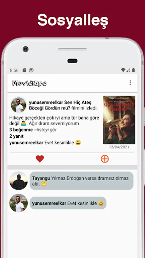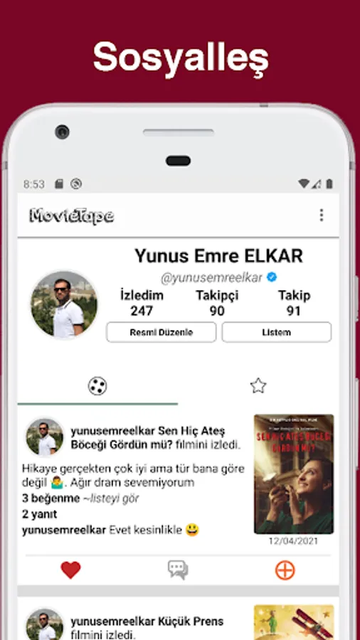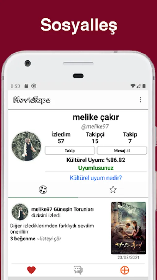 With Movie Tape, you can review daily movie recommendations and movie lists, measure your compatibility with your friends according to the movies you like, and meet people who share the same movie taste as you.