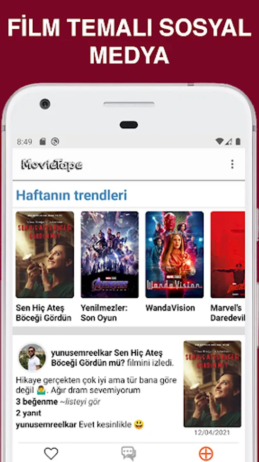 MovieTape is a movie-themed social media coded by Yunus Emre ELKAR in 2020. The first foundations of the software were laid in 2019. MovieTape has been prepared in Android Studio with Java programming language. The interface is designed in XML language and Adobe Photoshop program. Google firebase platform was used for the database.