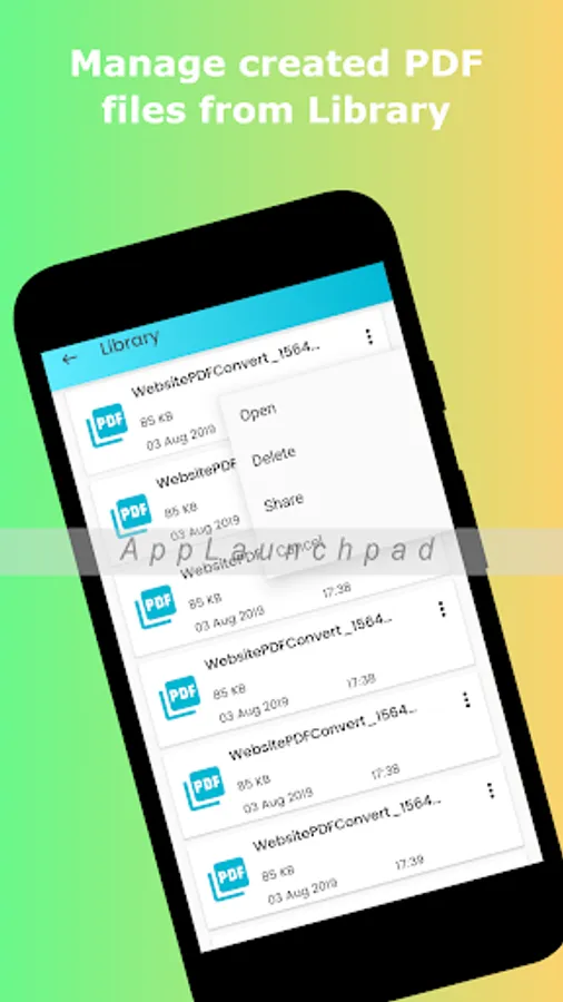 Website to PDF converter is designed to convert Website into PDF files. Open website which you want to convert by clicking Create Button on the Home Screen and then after loading the website click on the Check Button to save it. We have provided custom name feature for PDF file so you can identify PDF files easily. You can access saved PDF files from Library, all your created PDF files will get listed here. From the library, you can View, Share and Delete PDF file.