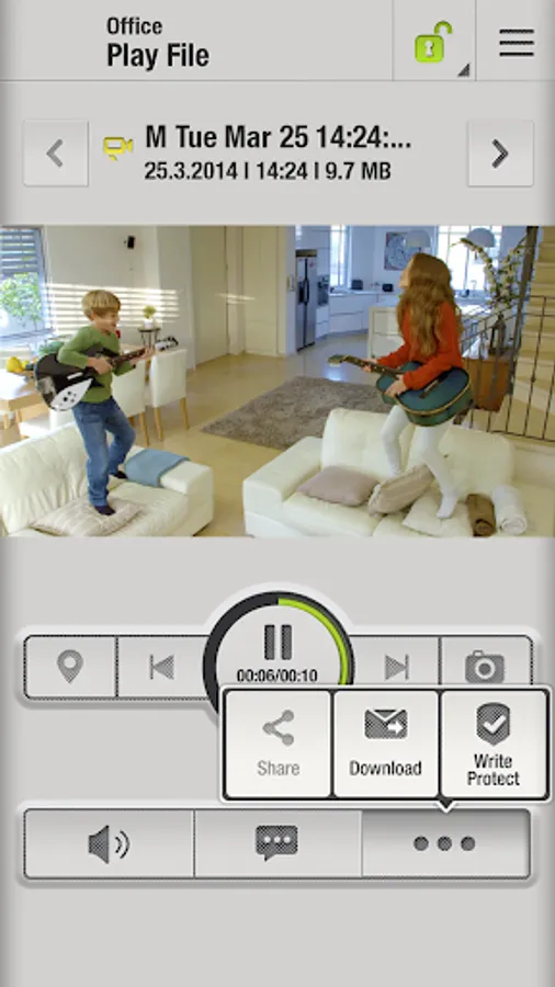 - Receive/respond to alerts; contact police, fire dept., or Central Monitoring System (CMS) using the panic button in the app, or call anyone on your phone’s contact list