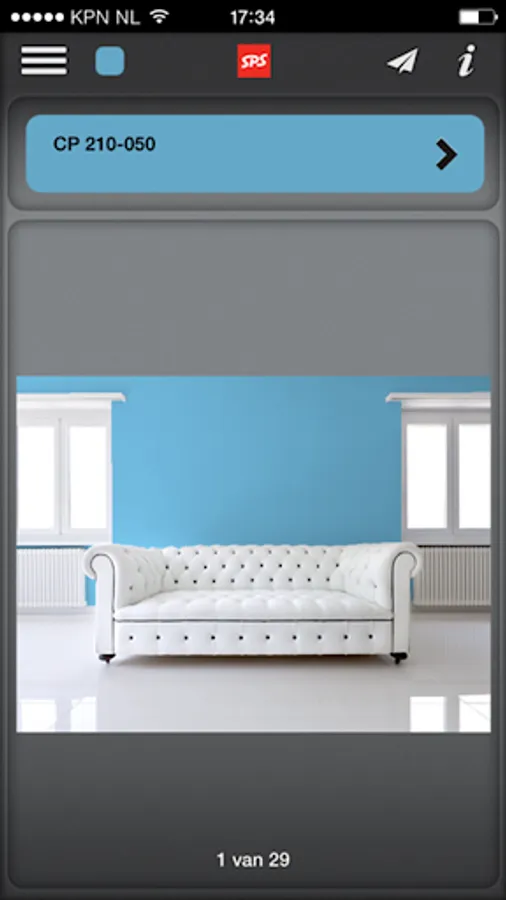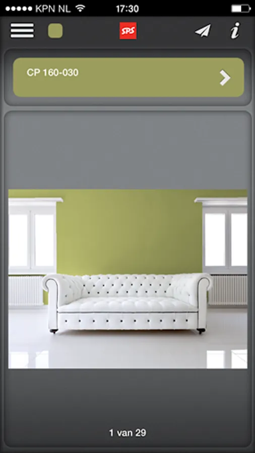 Welcome to the "Colorclicker" colour-selection app offered by SPS bv. This unique colour-selection app has been developed to inspire, guide and support professionals and end-users in their search for the right colour. Simply photograph whatever you want to paint: living room or bedroom, kitchen, bathroom, office, office building, etc., then select a colour from an SPS colour fan, or another popular colour fan, and indicate which surface you want to colour. ColorClicker shows you the effect of your choice immediately! ColorClicker even makes allowance for shadow and the position of the light source! You can download the app via the App Store or from Google Play. The app is displayed best on a smartphone and Ipad. The resolution may be slightly lower on some Android tablets; this results in a less attractive display.
