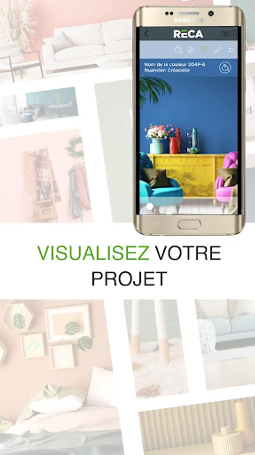 It allows you to find THE perfect color to go with your room and match your decoration for a trendy look that suits you. Selected from our 1241 shades or by flashing a color you like on another medium, you can apply this color to your walls or ceiling virtually on your smartphone or tablet.
