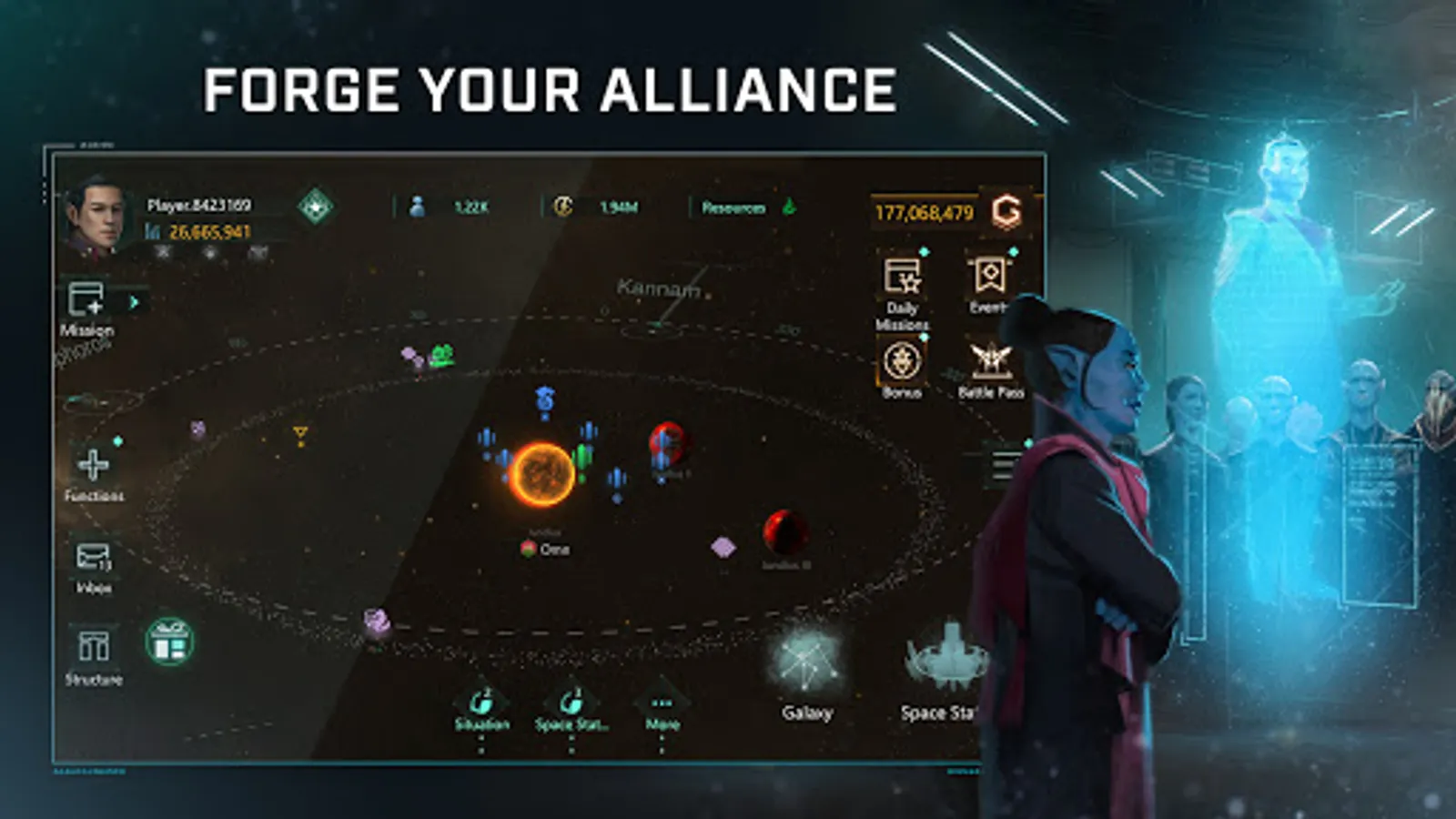 - Convene with allies to form an attack strategy, then wage war on other players across the universe.