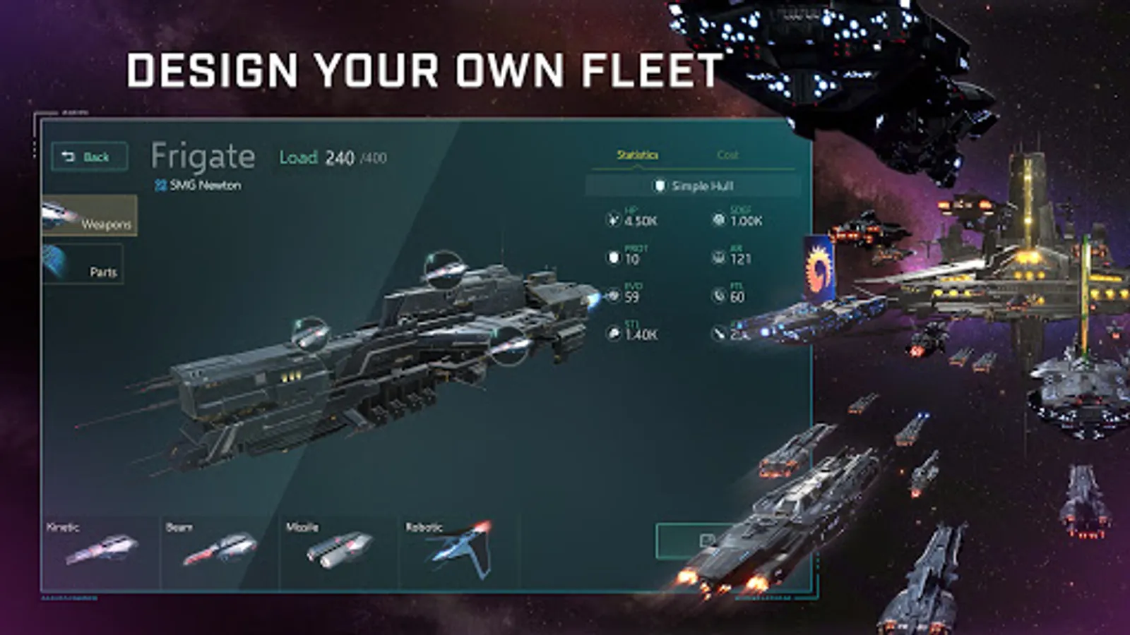 - Create and modify your fleet design with in-game ship design mode! Upgrade your fleet for maximum power!