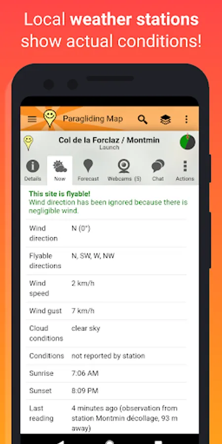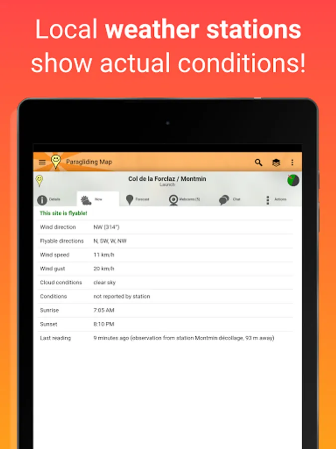 ▪ Real-time weather station data from Pioupiou, Holfuy, MADIS and FFVL show you actual weather conditions.