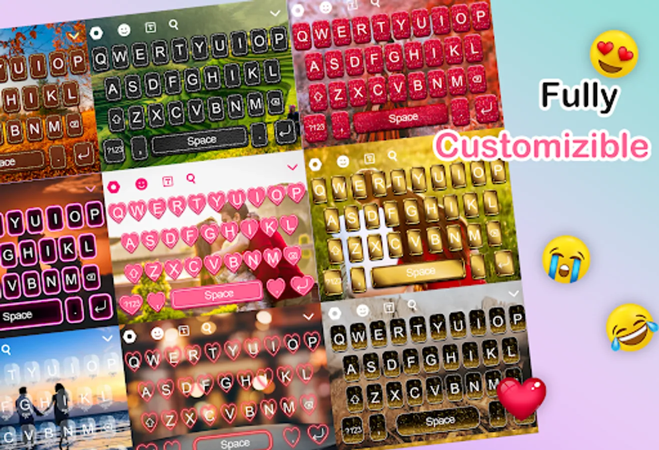 Right tool which will help you set your picture on keyboard. With special designed keys, your picture on keyboard background, all help you express your emotions ad attitudes with love everyday. Meet Picture Keyboard Customizer, you can change photo backgrounds by choosing one of the images from your phone gallery, choose your love keys style, set font keys and more. Also, you can choose keyboard theme from app theme gallery. It't time for Picture Keyboard Customizer. Let's start now!