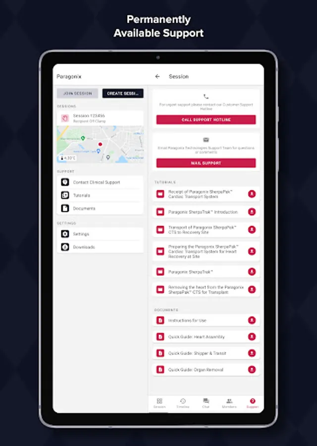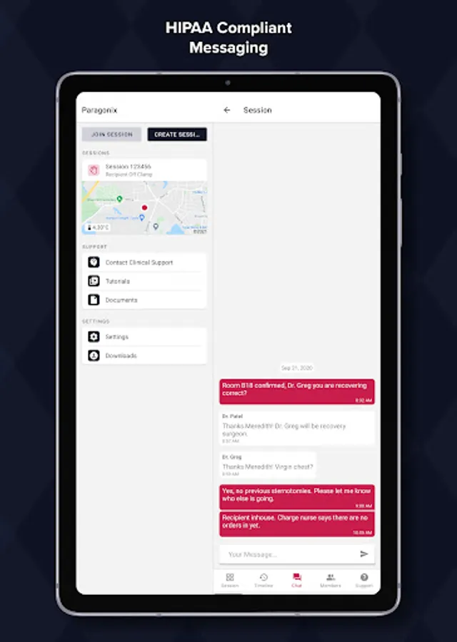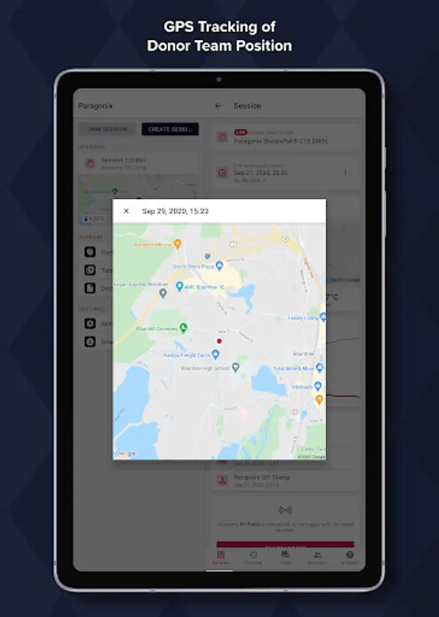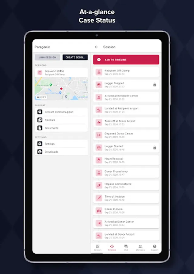 The Paragonix App provides real-time, centralized, secure coordination for transplant teams including pairing with the Paragonix organ transport systems to share organ status with the entire team.
