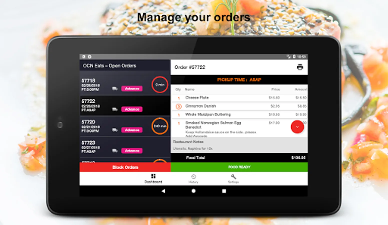 The OCN Eats Restaurant Manager facilitates two-way communication between the food delivery company and its restaurants. The restaurant staff can manage their orders and communicate order status to the dispatches for real time update. Hence minimize the time spend by dispatchers over the phone for order communication with restaurants. Faxing, printing of orders has been eliminated from the app. The order can be viewed and printed on demand if needed.
