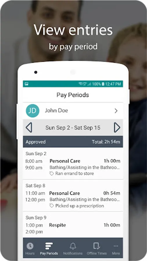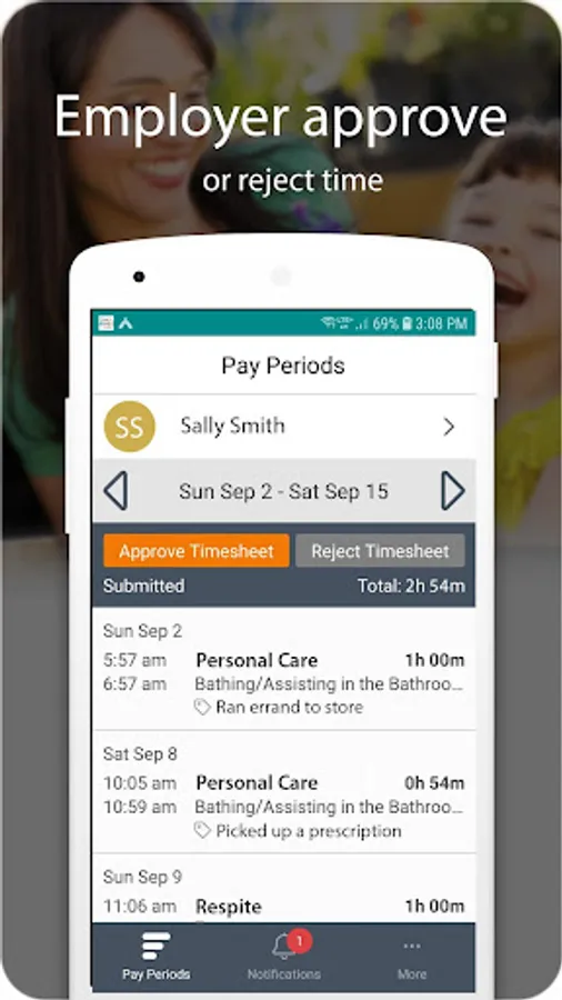 As an Employer, Time4Care allows you to easily view and approve or reject your Employees’ submitted hours. The app makes it easy to access and complete this important step so that your workers are paid accurately and on time!