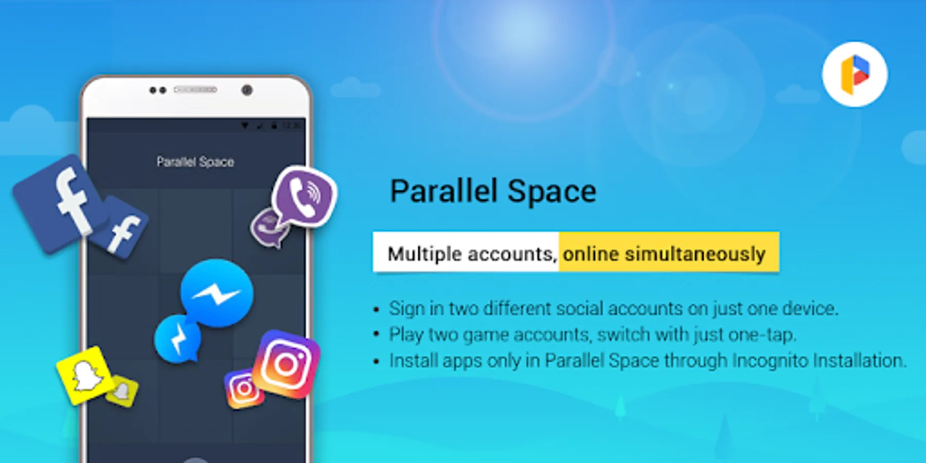 As one of the top-ranked tools on Android, Parallel Space helps more than 90 million users log on multiple accounts at the same time on one device and highlight their own style. It also protects user privacy by making apps invisible on device with the Incognito Installation feature. Moreover, users are able to customize themes of their cloned apps and the themes of Parallel Space to style their own space. Parallel Space supports 24 languages, and be compatible with most Android apps. Get Parallel Space immediately to manage multiple accounts, protect privacy, and customize your own space.