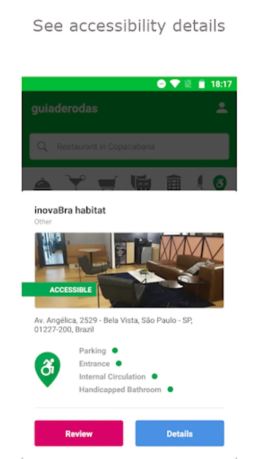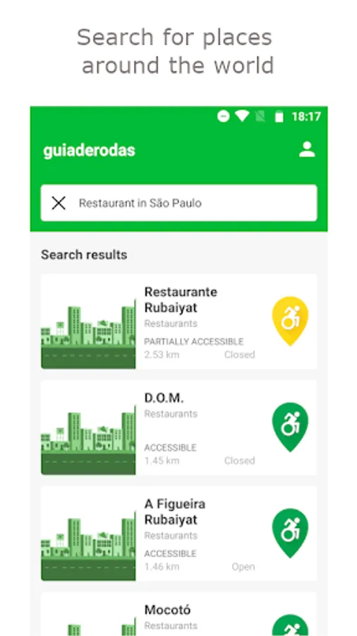 Use Wheelguide for rating the accessibility of venues and search for places that have been rated.