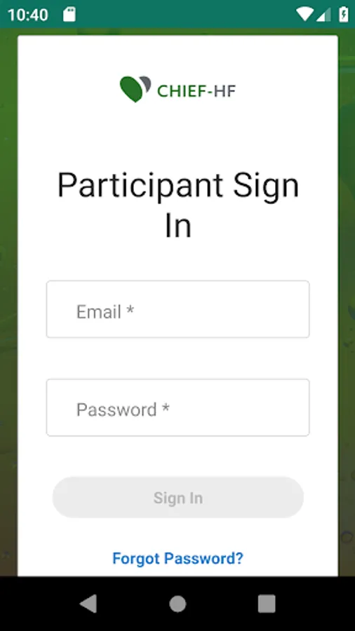The app is for participants in the CHIEF-HF trial only. If you have not been invited to participate in this trial, please do not download the app.