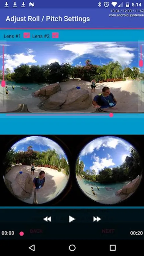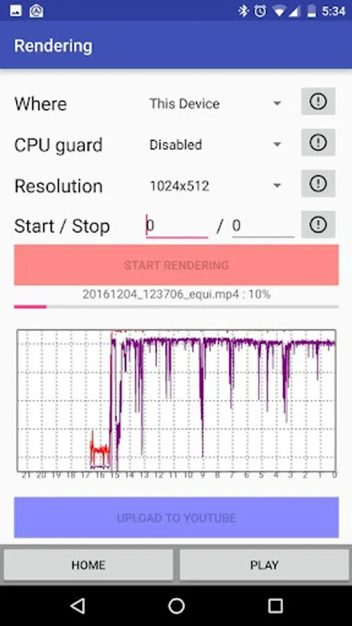Once you configure the Yaw, Roll, and Pitch of the recorded video you can start the rendering process either on your Android device itself, on your Home PC ( Additional application needs to be installed ) or in the cloud.