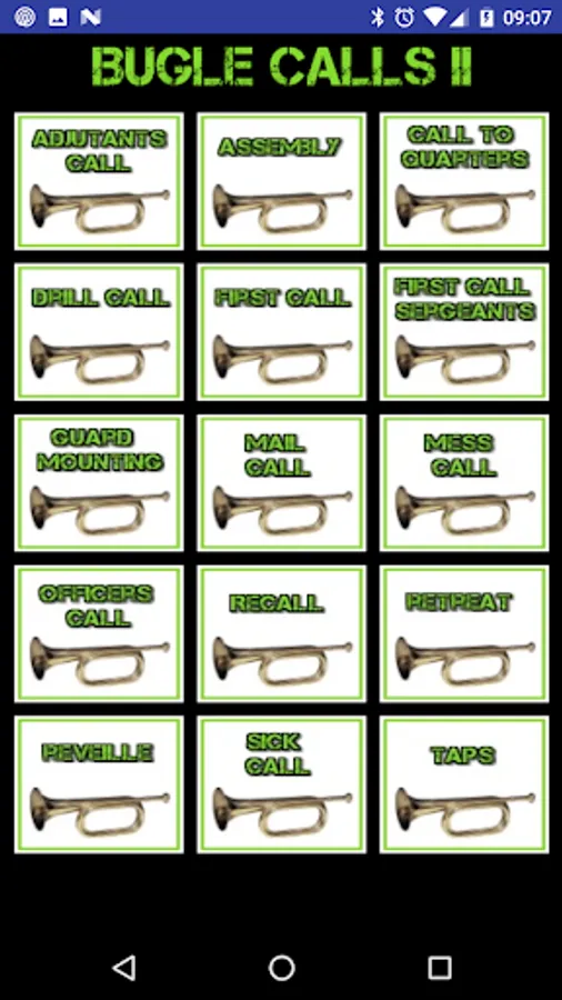 If you are preparing for Basic Training, currently serving or a veteran who just misses the familiar sound of the bugle then this is the app for you. There are 17 bugle calls including;