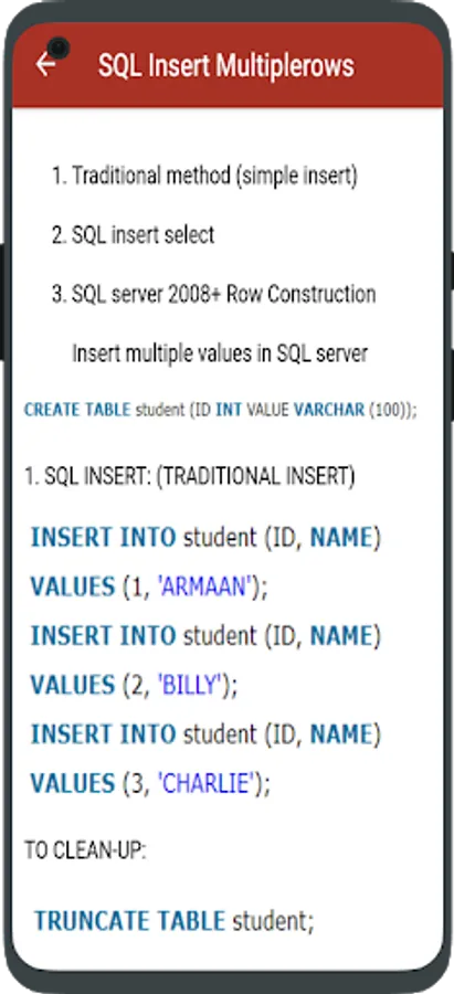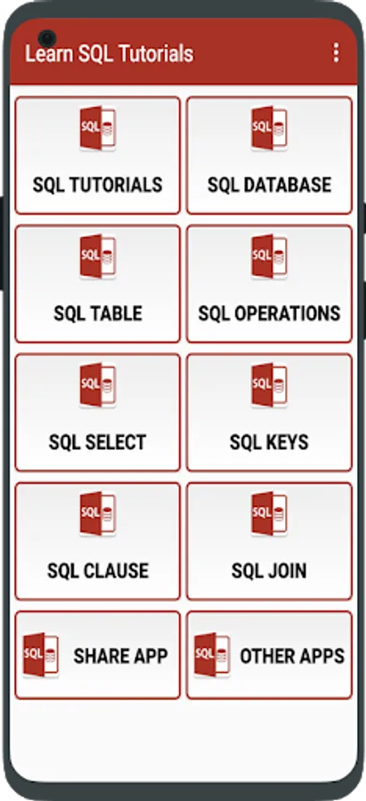 Learn SQL Tutorials is application for Learn SQL Programming for Database Management System.