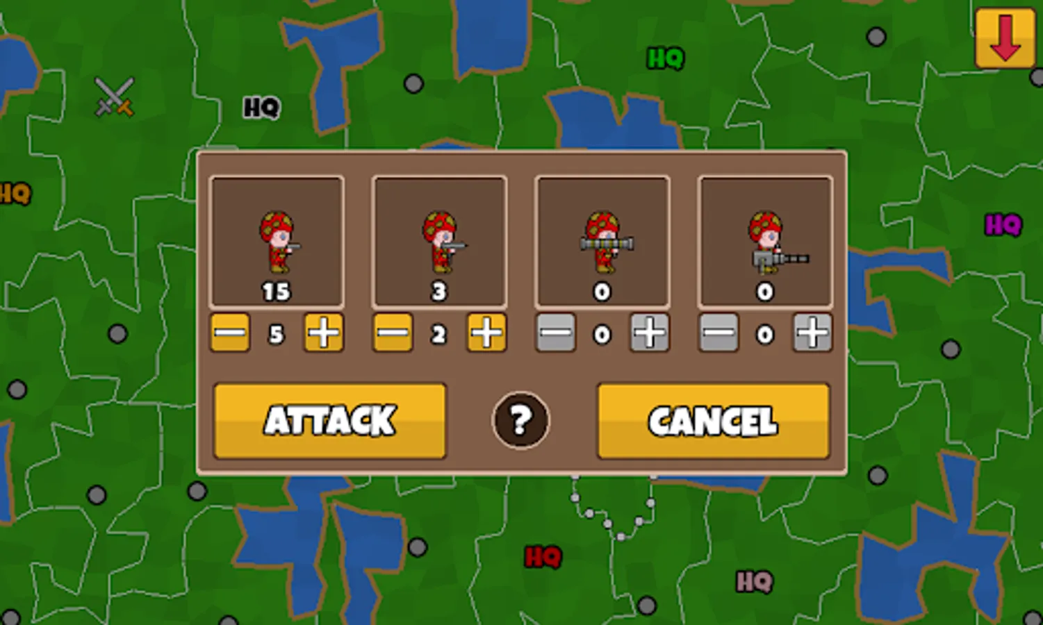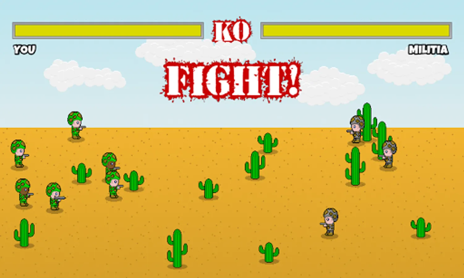 Assign pistol, uzi, rocket and minigun soldiers to wrestle control from the opposing armies or militia.
