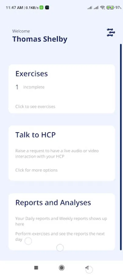 The patient receives the guidance required to perform exercises correctly, at the right time and to the correct extent, thus ensuring outcomes are measured and injuries resulting from incorrect performance are minimised. The clinician has the facility to call the patient immediately if any issues are noticed or schedule a call for a routine-follow up, and the patient has the same options. The patient’s exercise performance can be assessed on the clinician’s dashboard, including a percentage of accuracy so that the clinician can give evidence-based care.