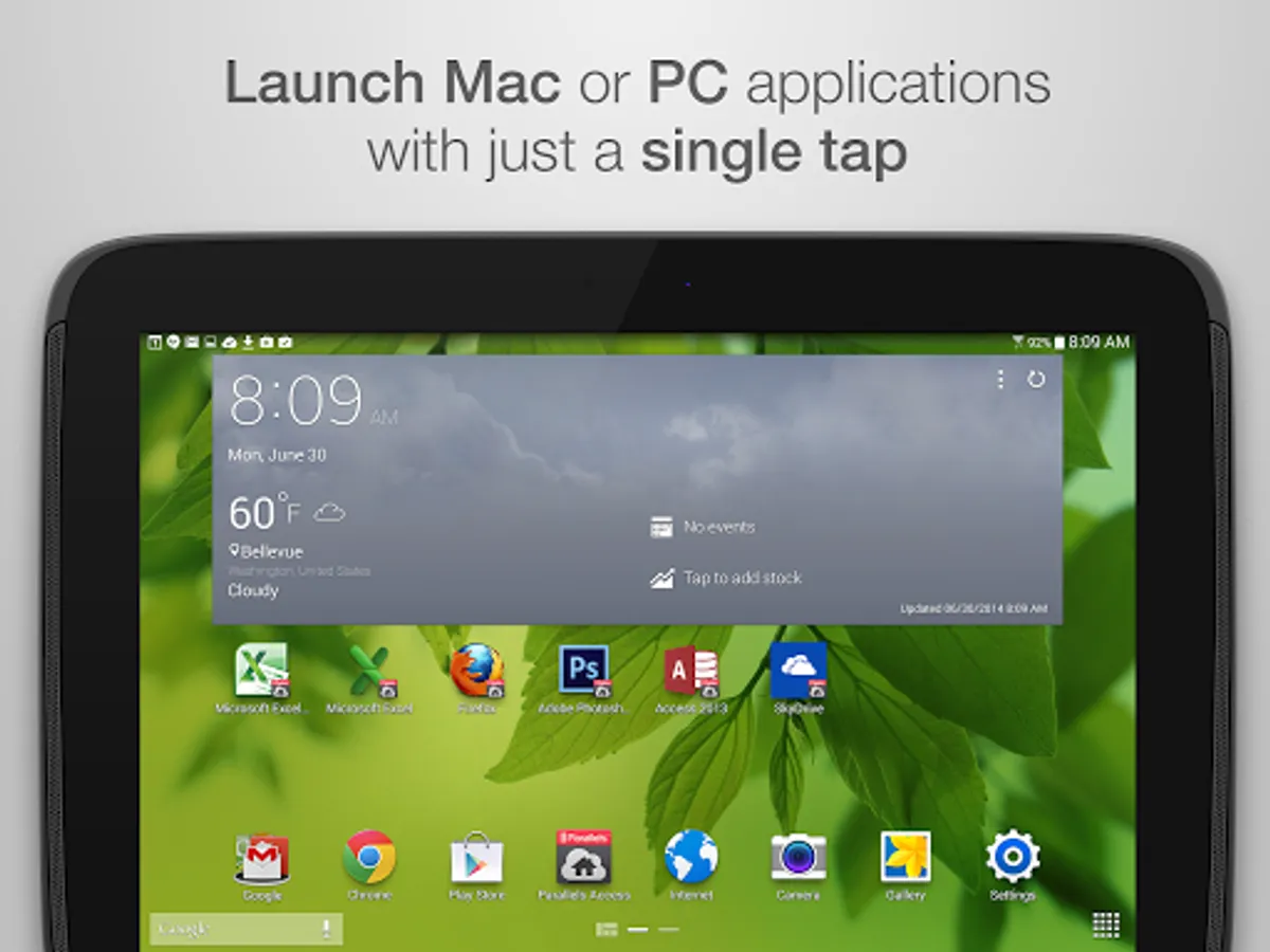 Parallels Access is the fastest, simplest, and most reliable way to remotely access all your Windows and Mac applications and files from your Android device. From accessing a single file that you forgot on your home computer to editing a complex document, Parallels Access gives you the peace of mind of knowing that you will be effective anytime and anywhere with just your mobile device.