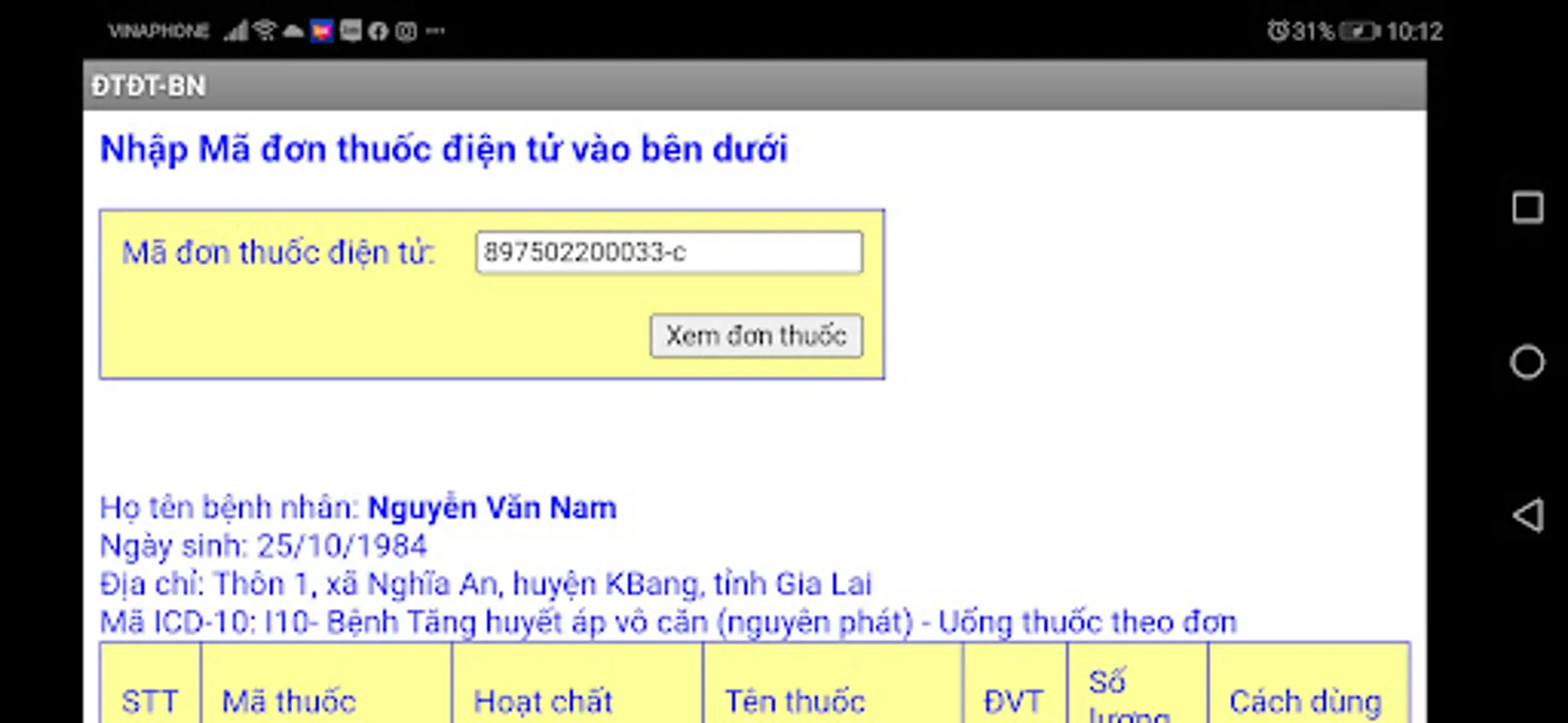 Application for patients to look up electronic prescriptions. The developer is Pharmacist Pham Thanh Ngan