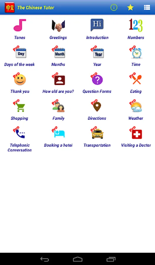 'The Chinese Tutor' is a Chinese (Mandarin) language-learning Android app. It is a good start for those who want to learn or want to communicate easily in Chinese language. This app is a great platform which one can access from anywhere at his/her own pace.