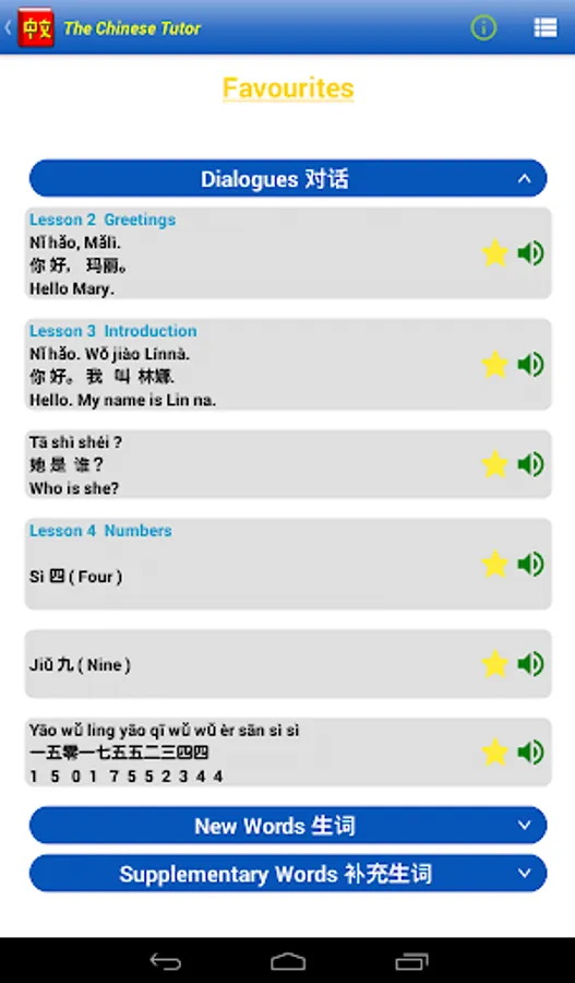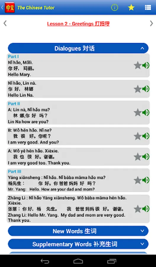 This app is supported with Pinyin script, Chinese characters and English translation. It is also equipped with audios, which are authentic and easy to understand.