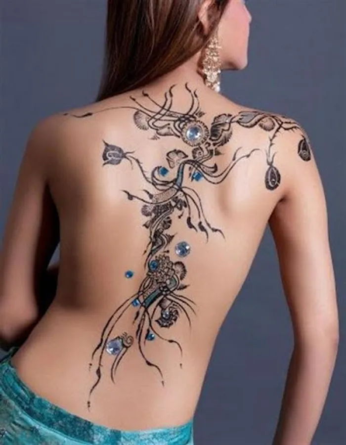 Mehndi practiced mainly in India and the Arab world, mehndi or henna is the application of as a temporary form of skin decoration, popularized in the West by Indian cinema and entertainment industry, the people in Nepal, Pakistan, Bangladesh and the Maldives also use mehndi. Mehndi decorations became fashionable in the West in the late 1990s, where they are called henna tattoos.
