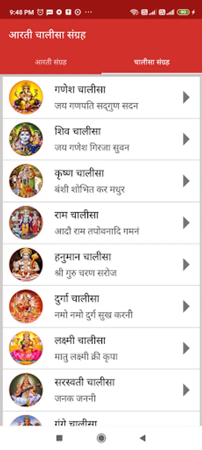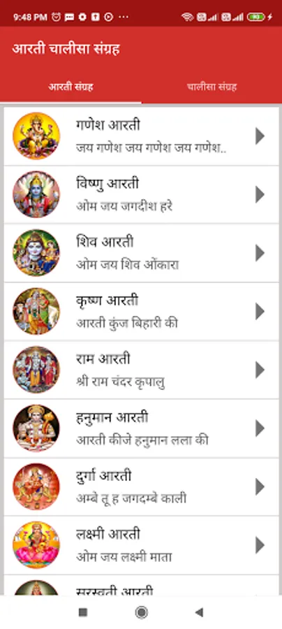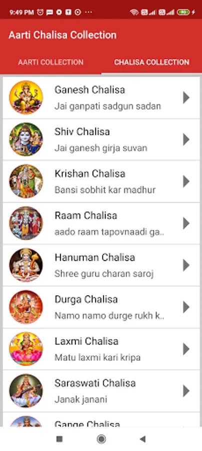 Aarti chalisa collection आरती चालीसा संग्रह with lyrics all gods aarti and chalisa lyrics like ganesh vishnu shiv krishan raam hanuman durga laxmi saraswati sai sanidev bhairav there is option to select english and hindi aarti and chalisa lyrics.