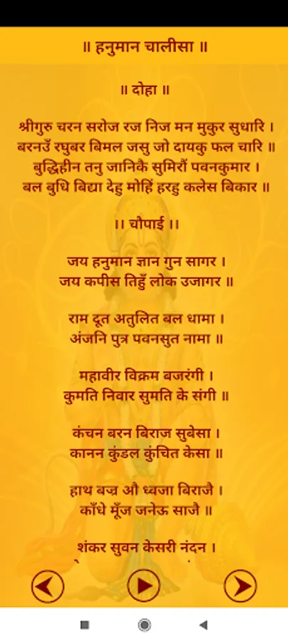 The poem is called a chalisa as it contains forty (chalis in Hindi) verses. The structure of the poem is extremely simple and rhythmic, thus making it all the more popular. The poem praises Lord Hanuman’s strength and kindness and recounts the Lord’s great deeds.