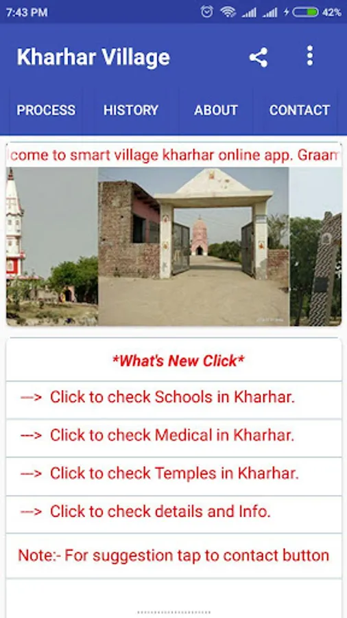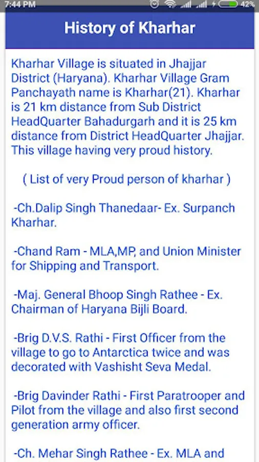 Kharhar Village Online App, this app have all about kharhar village situated in Jhajjar District (Haryana). In this app different type of information about kharhar like History of kharhar, Schools in Kharhar, Temples in Kharhar, Medical in kharhar, Chopaal, Talaab etc.