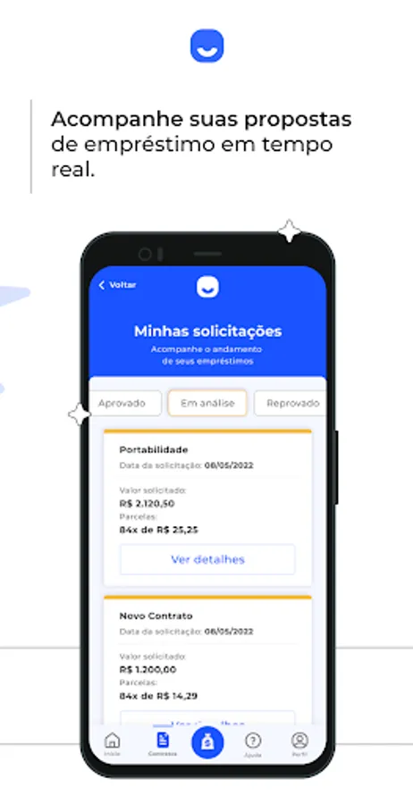 Have you ever thought about getting your loan without leaving home? Thus, the money is deposited in your account faster, with the security you always wanted. And more: with the app, you have access to various information about your payroll loan proposals, to consult anytime and anywhere.