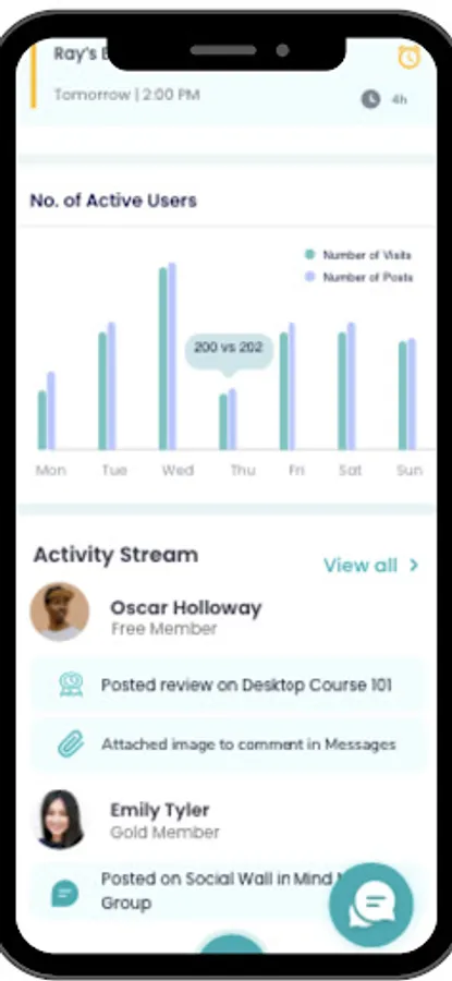 Add posts via admin and your members will see the latest feed when they enter your membership.