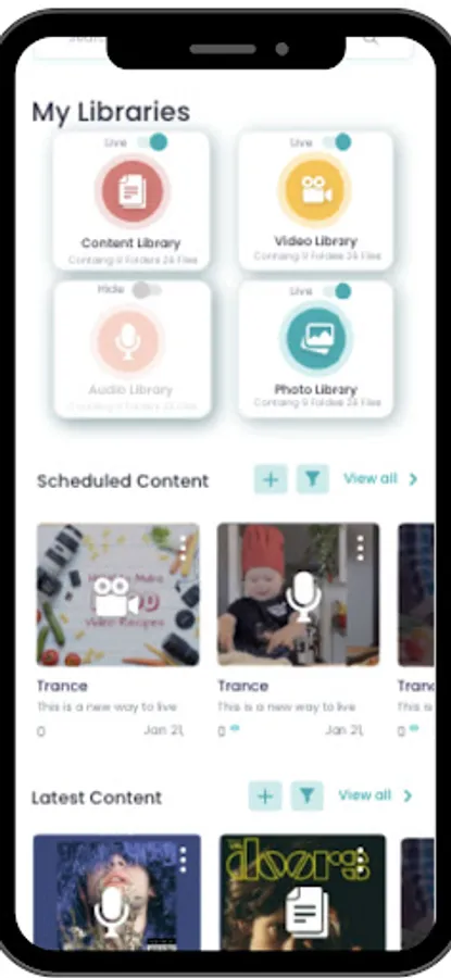 Just like the video library you can organsie your audio into folders or keep them individual.Schedule and select who sees them.