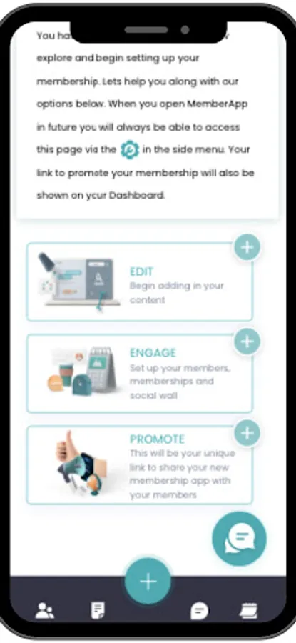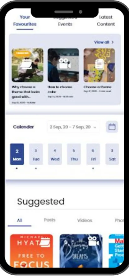 Here you can use your imagination and create content into folders how you please.. just like website pages. Add text, embedd a video or even add a file to download... the choice is yours. Schedule and select who sees them.