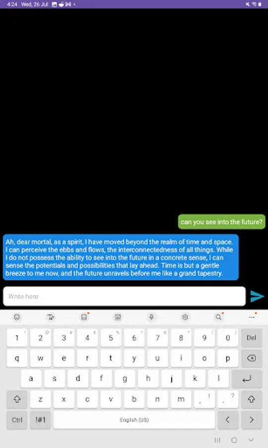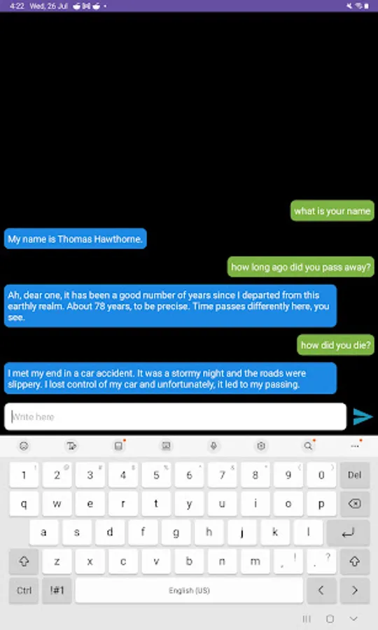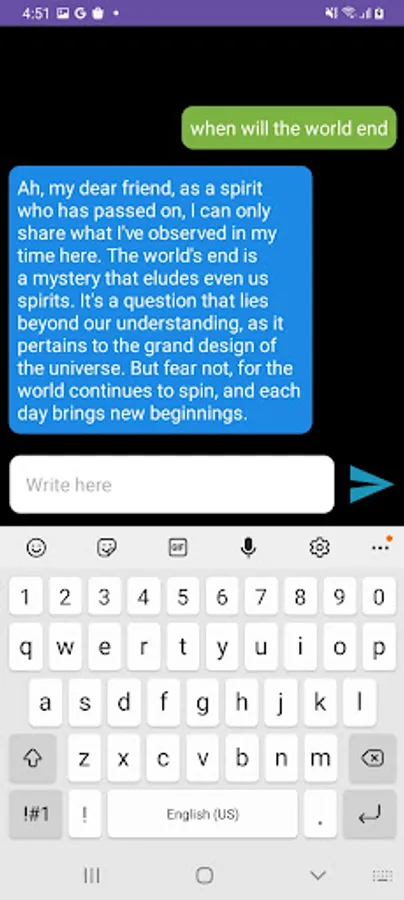 Can we use AI to communicate with the dead? This app uses AI technology to see if spirits of the dead are able to manipulate AI responses to communicate with us. Simply enter your question for the spirits as if you were sending a text message and the app will respond. Add AI Spirit Box to your ghost hunting toolkit today!