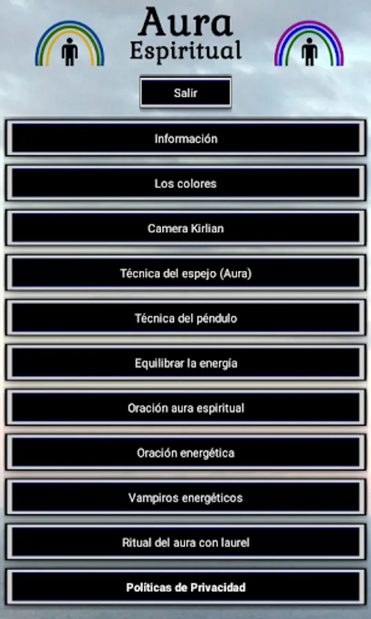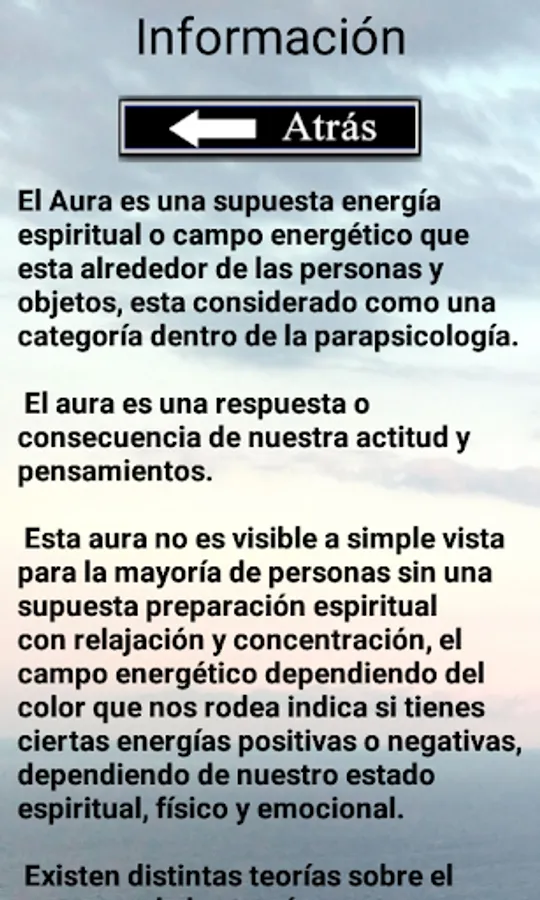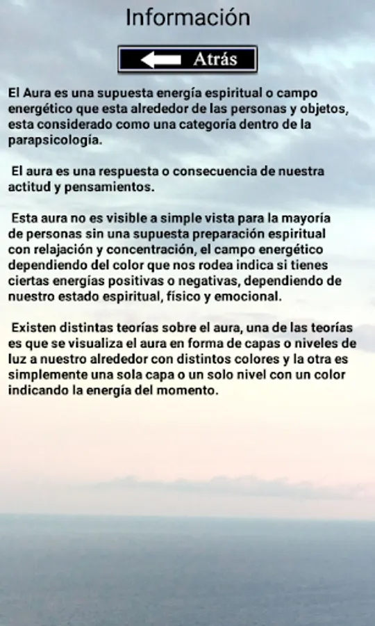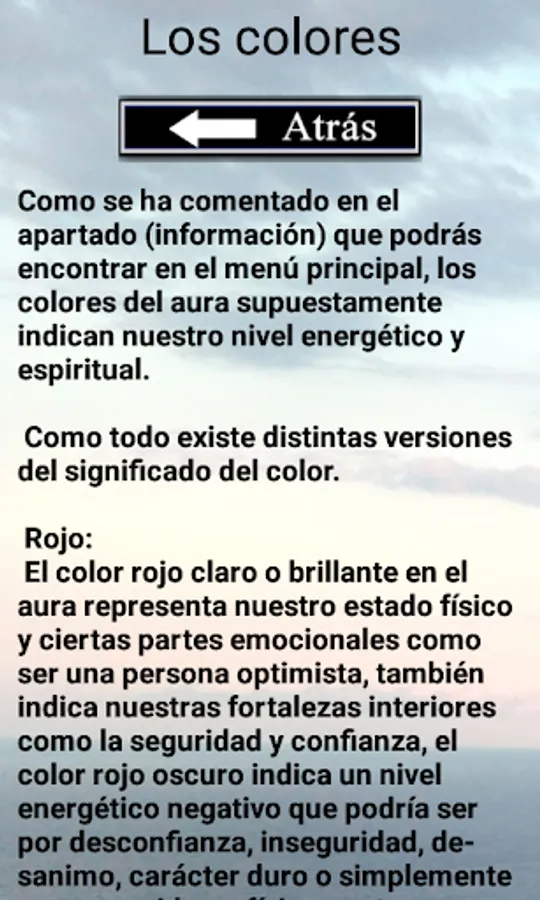 With this application you can find information about the spiritual aura and its fields or energy levels of different colors.