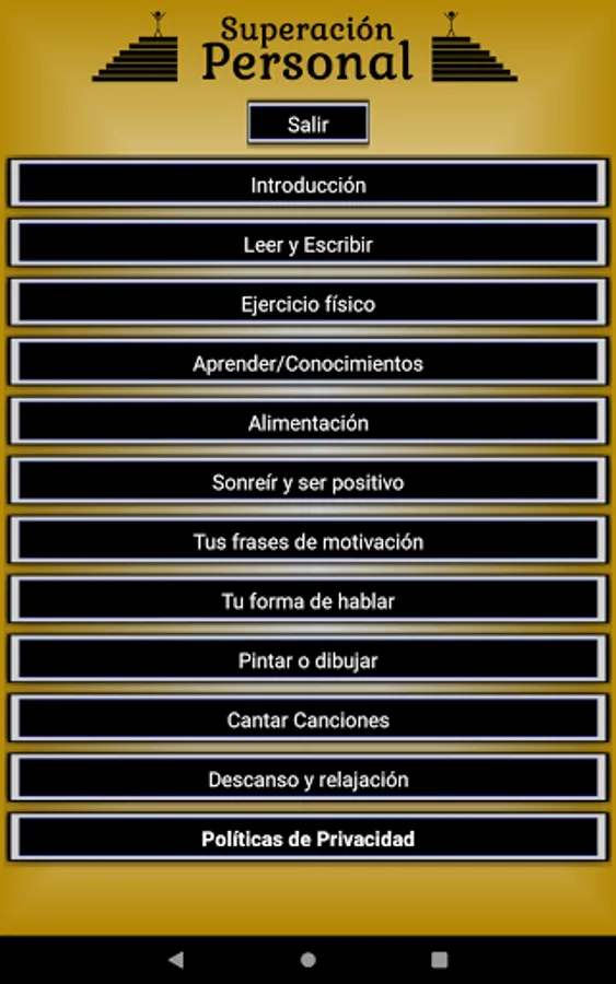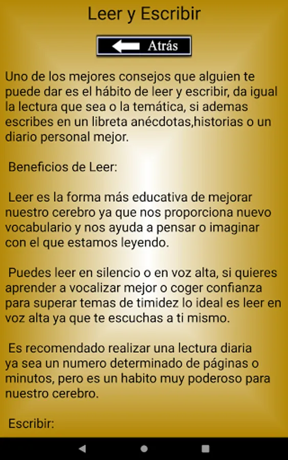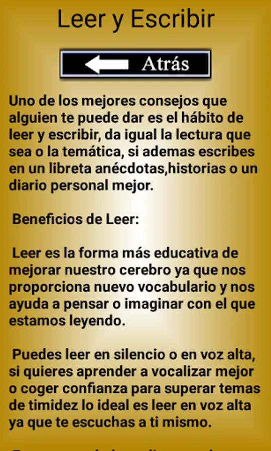This app will show you information on certain positive habits to help you with your personal improvement. Good daily habits are the key to everything since they can help you with your confidence, shyness or improve certain characteristics in general in our personal development.