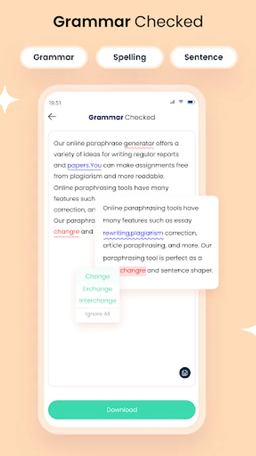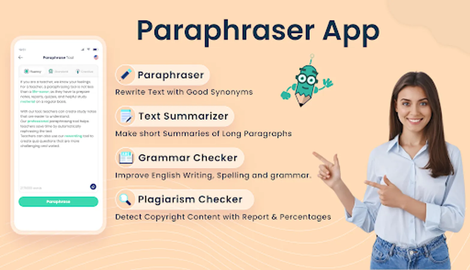 Hit and install Paraphrase Tool – Paraphraser right now into your device. Start converting unlimited articles, essay and text into different languages with text and sentence rephraser app.