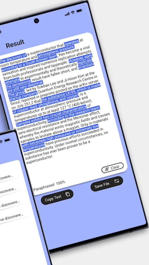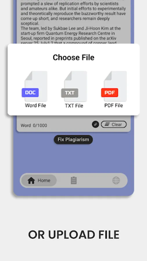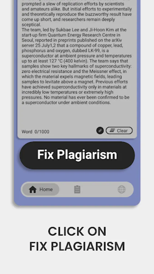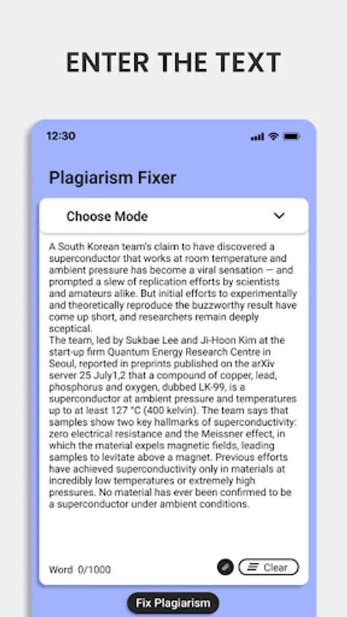 This plagiarism fixer app is very easy to use, you only need to put the content into the text field, choose the mode and then click the fix button and the content will be removed from the content. Additionally, you can also extract the content from the pdf, word, and text files. Simply select the file from the mobile device and the app will automatically extract the content and paste it in the text field.