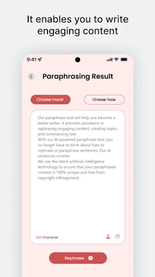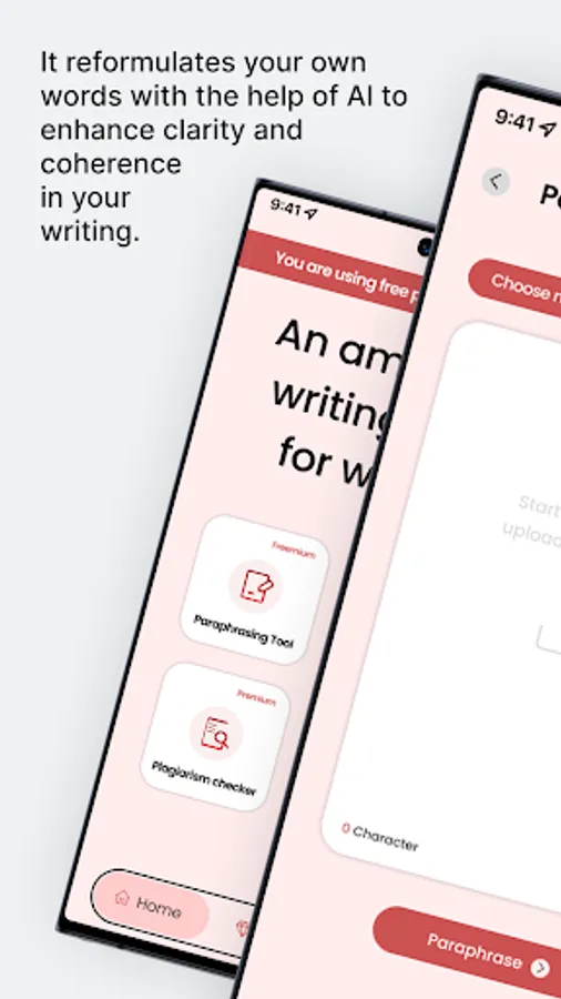 Paraphrasingtool.ai (android) is the best yet simple to use paraphrasing tool app that allows writers to paraphrase content free online and offline on mobile devices. It is a paraphraser app that is suitable for students, professionals and writer's needs. The app has two features