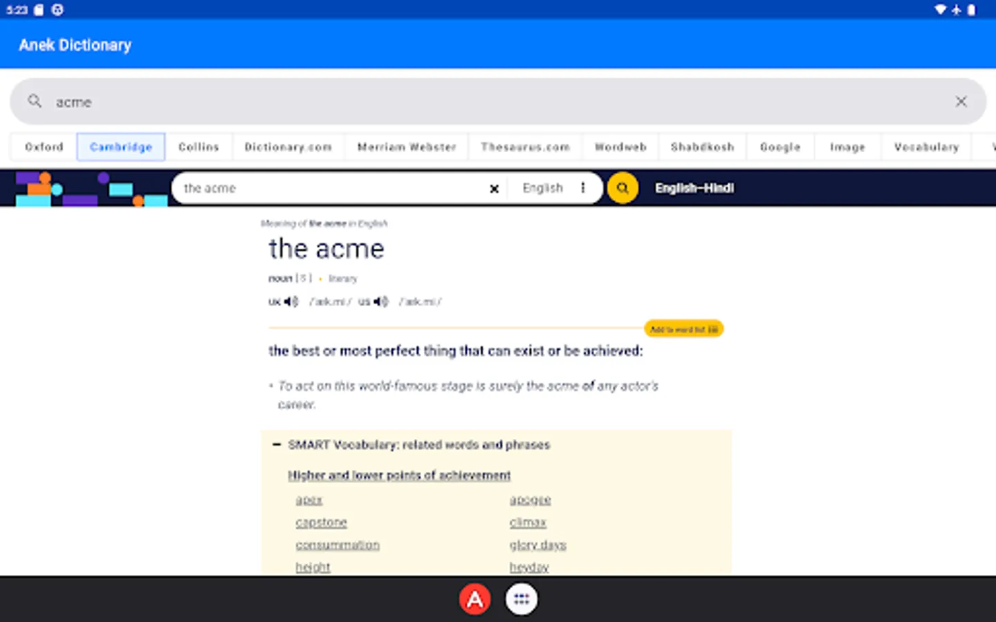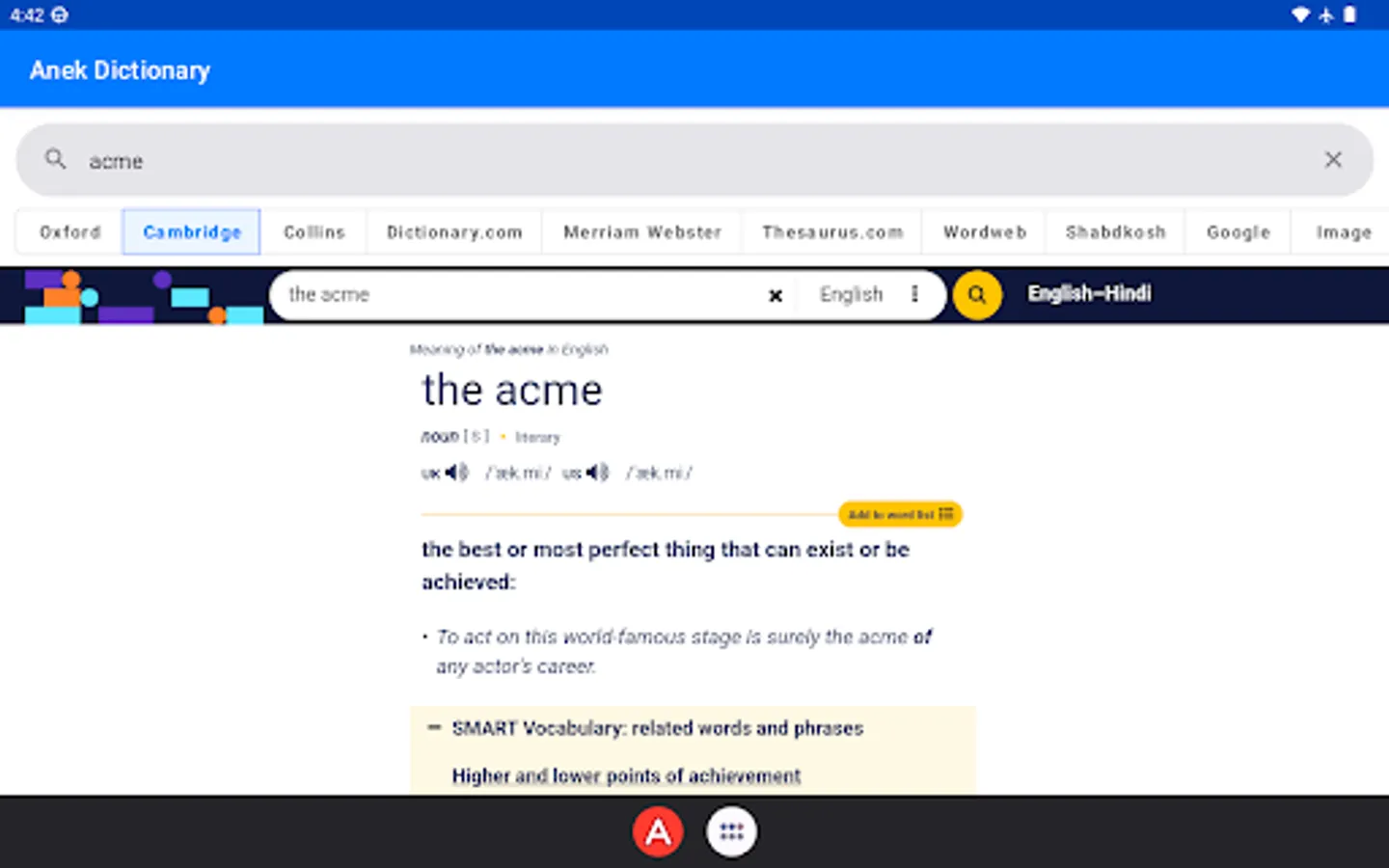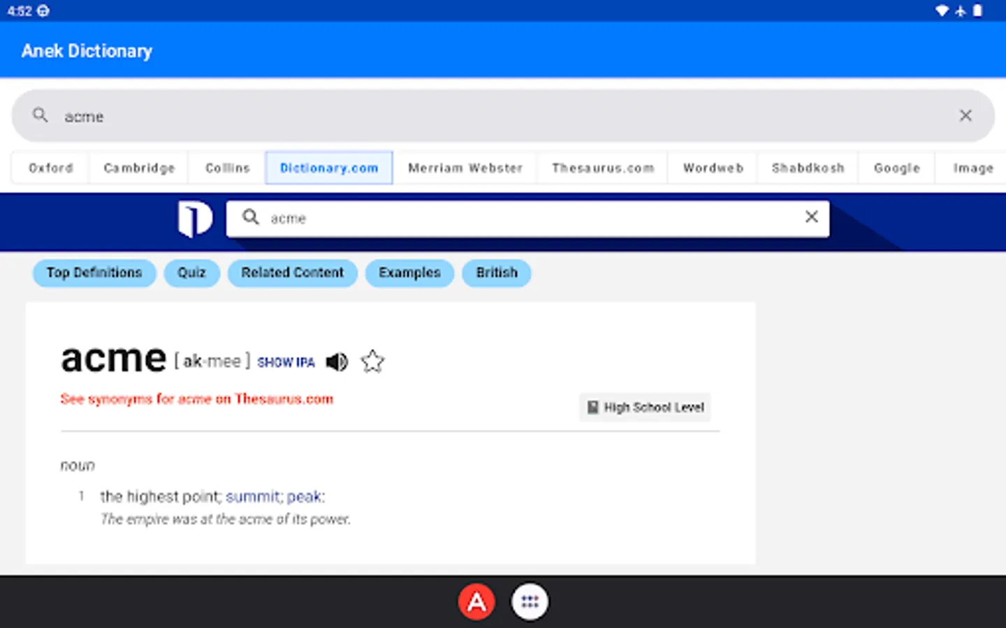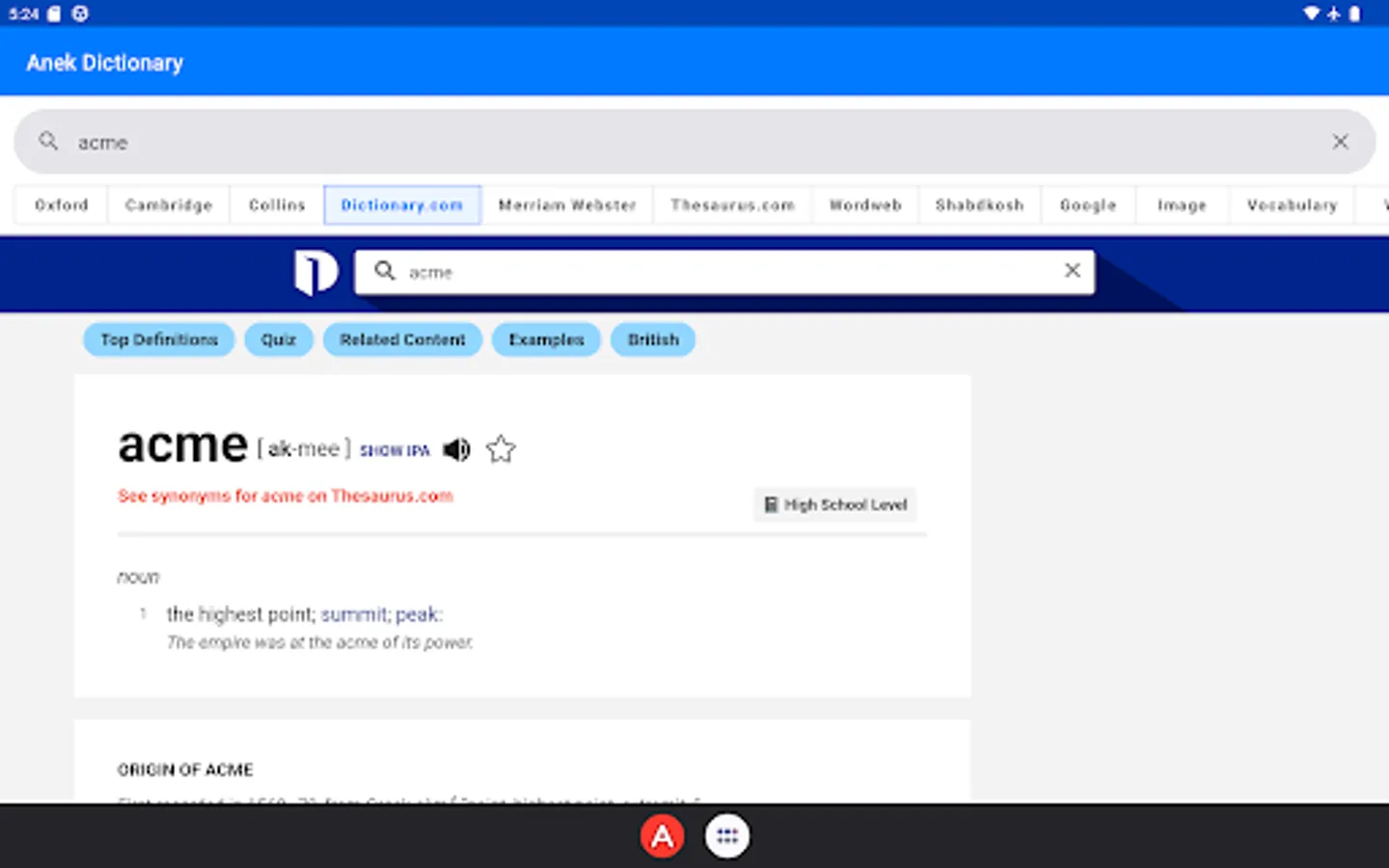 Get world’s most useful and respected dictionaries, optimized for your Android device. This is the best Android app for English language reference, education, and vocabulary building.