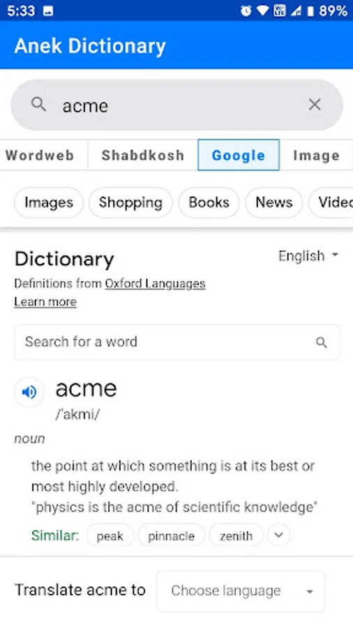 🔵 Wordweb — international dictionary and word finder with more than 300,000 possible lookup words and phrases