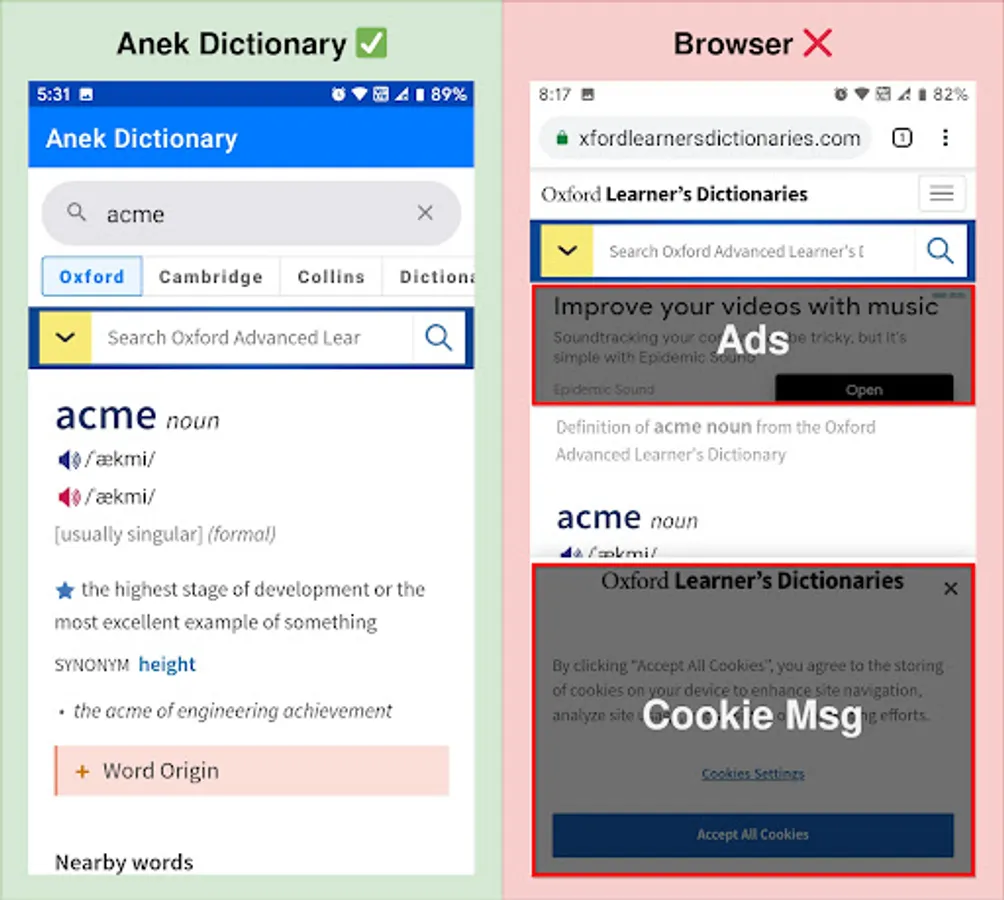 Anek Dictionary is a valuable resource for anyone using English in an academic or professional context. Tailored to: