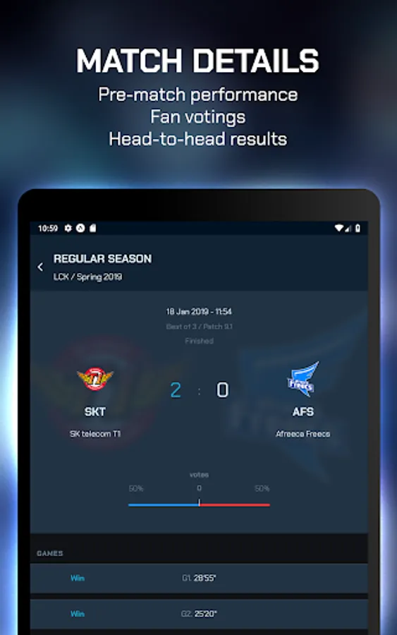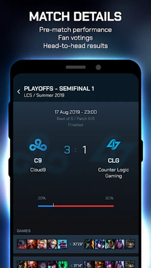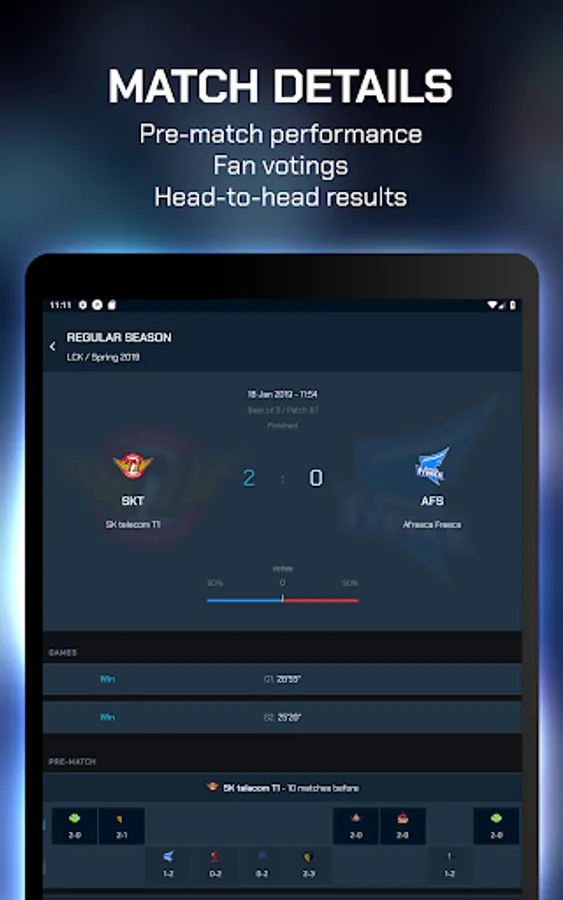 * View matches results: scores, voting, recent performance of teams, head-to-head results