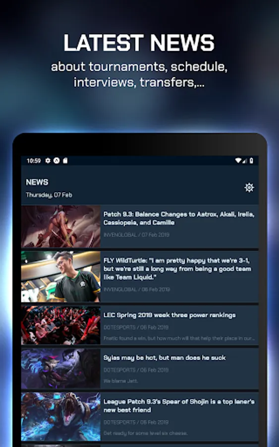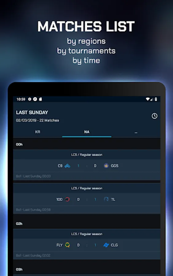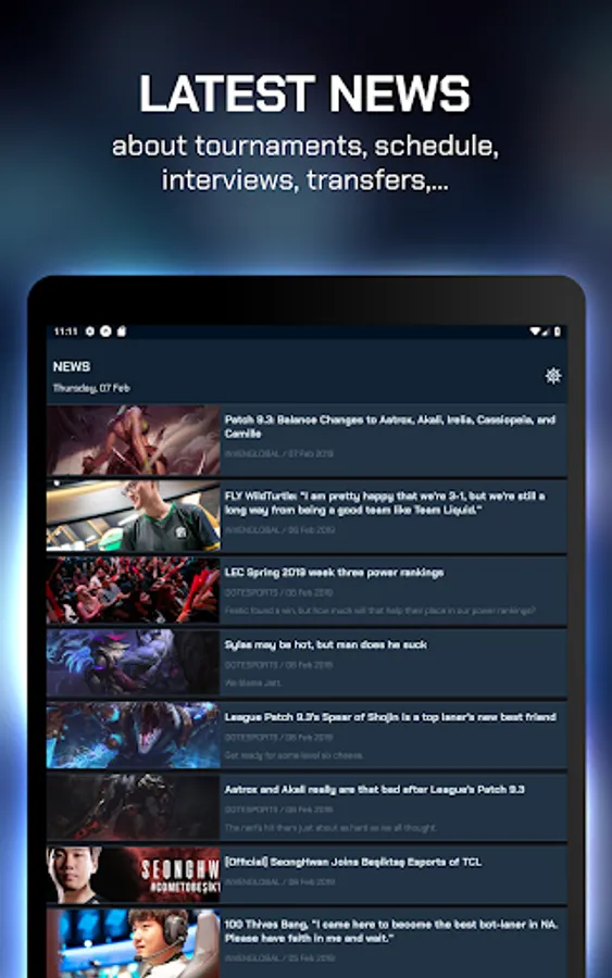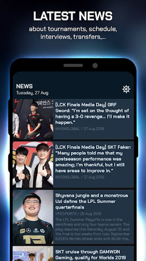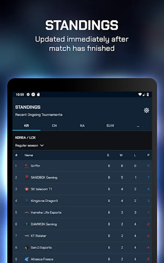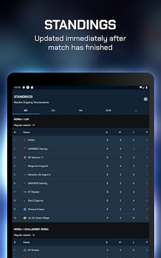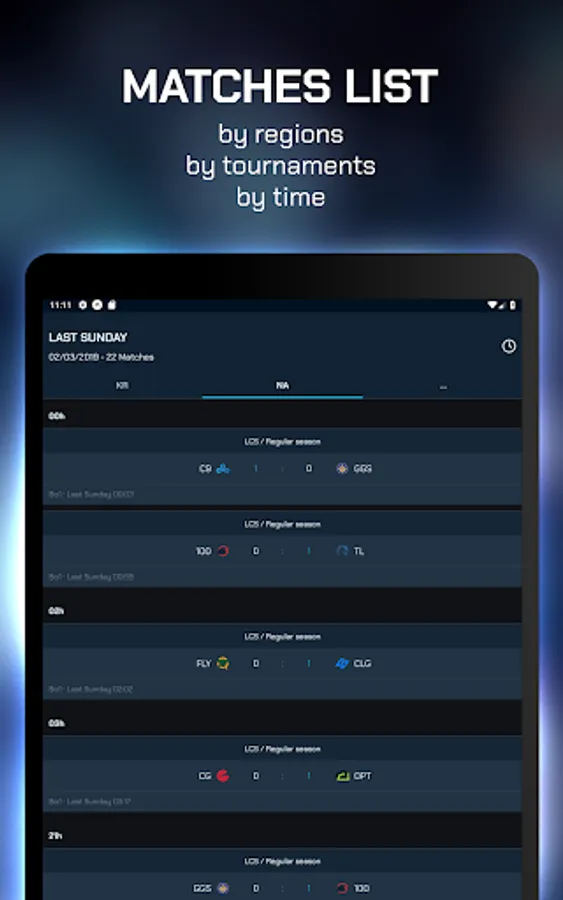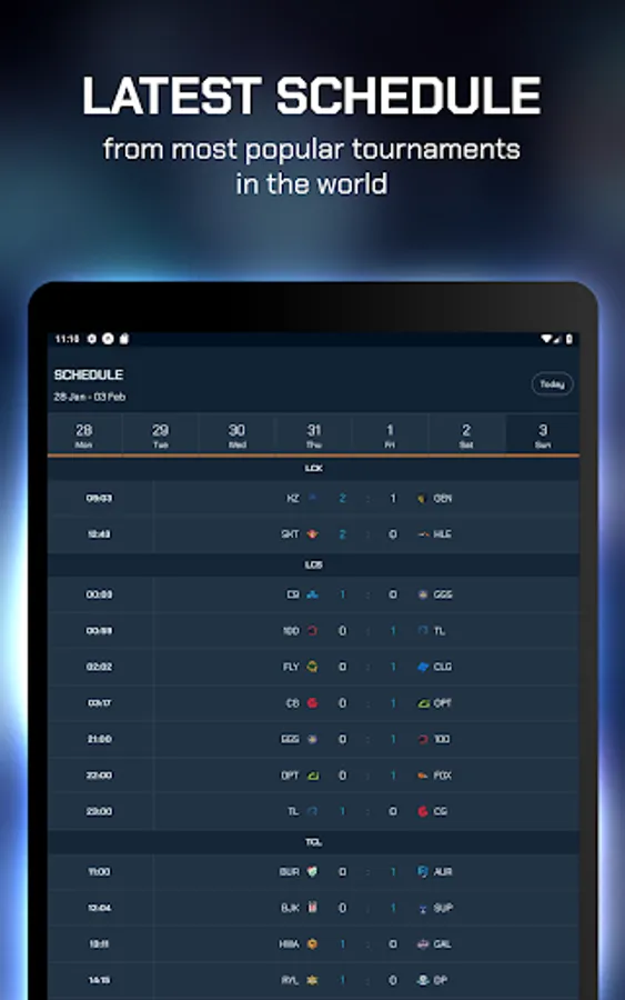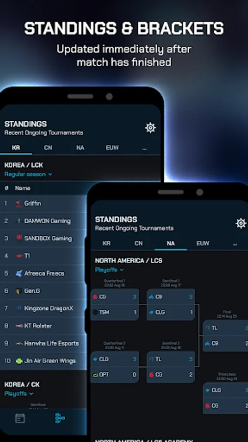 ParaScore keeps you up-to-date with all the schedules, latest scores, standings and news from all most popular League of Legends tournaments in the world: World Championship, Mid-Season Invitational, All-Stars, Rift Rivals, LCK, LPL, LCS, LEC, VCS and many more.